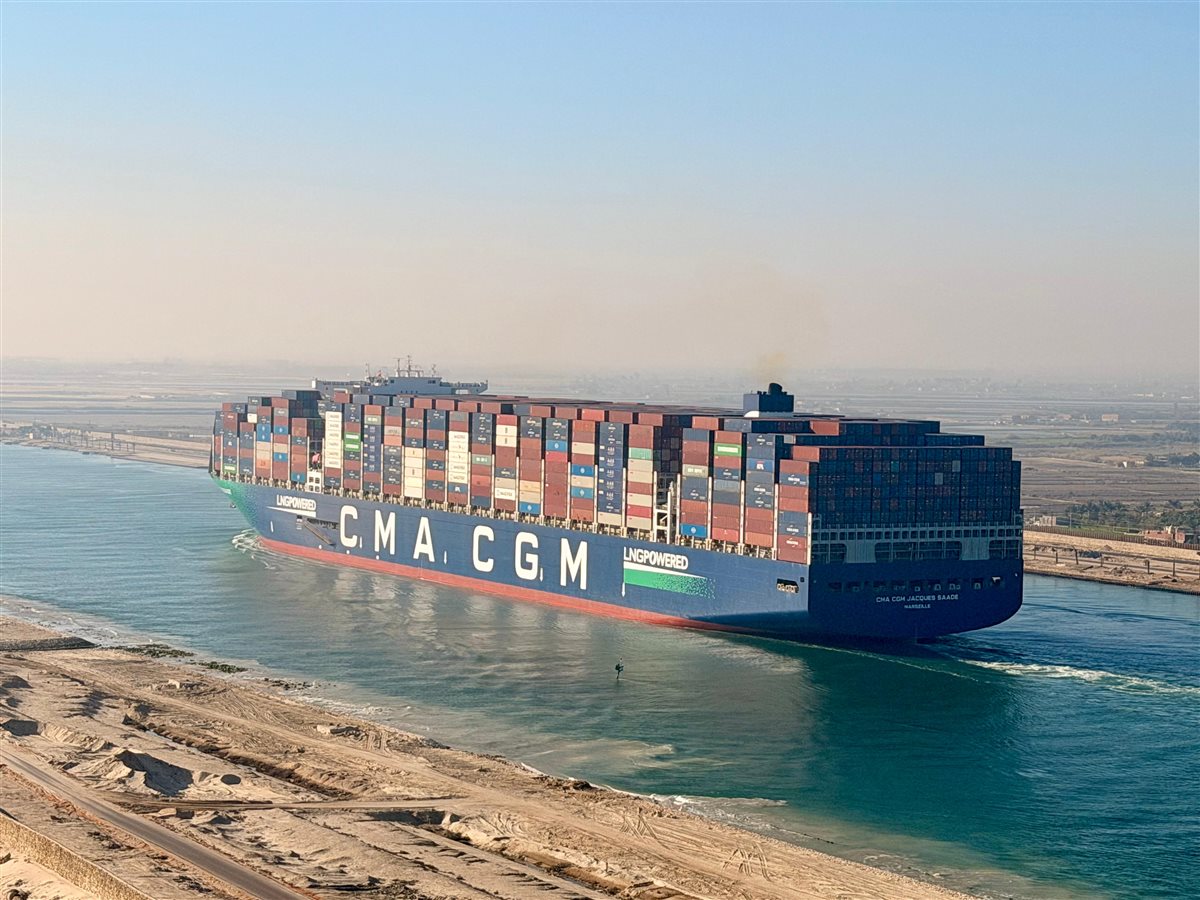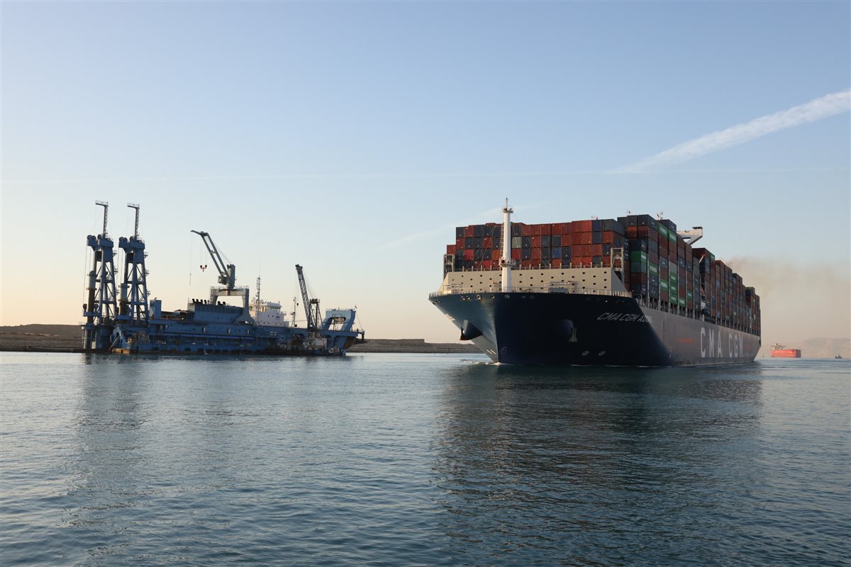 قناة السويس تشهد عبور سفينة الحاويات العملاقة CMA CGM JACQUES SAADE إحدى أكبر سفن الحاويات في العالم بعد عبورها باب المندب إيذانا ببدء العودة الكاملة لسفن المجموعة الفرنسية