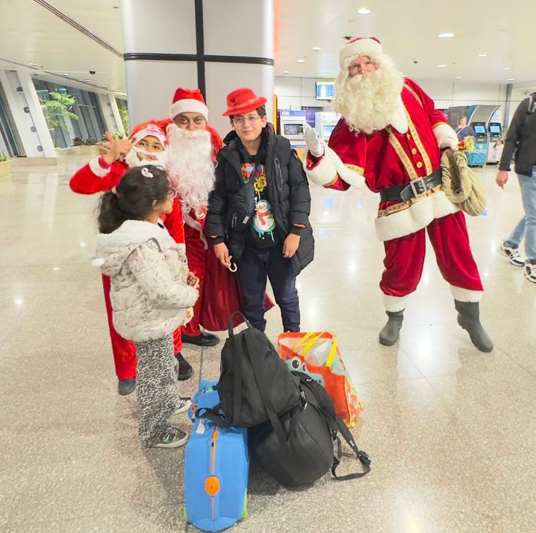 بابا نويل يوزع الهدايا بمطار الغردقة
