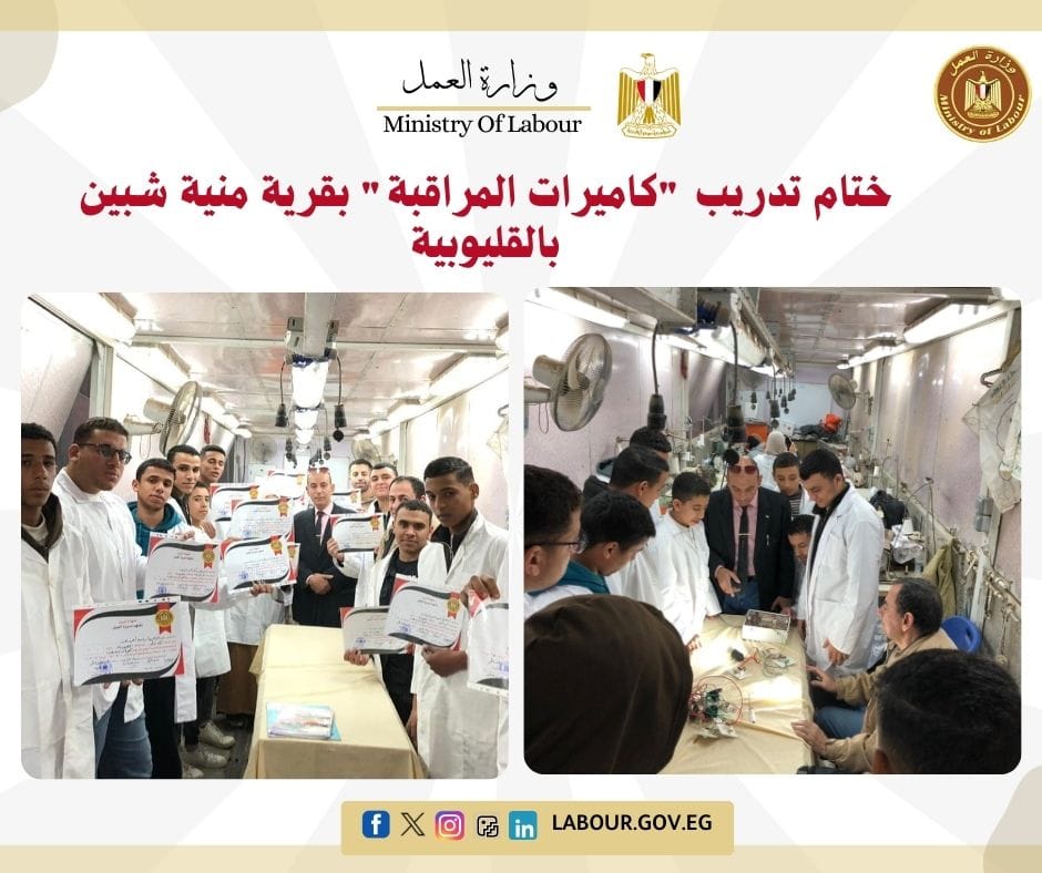 اختتمت مديرية عمل القليوبية برنامجاً تدريبياً حول "كهرباء التوصيلات وكاميرات المراقبة" لـ 16 متدرباً بالوحدة المتنقلة بقرية منية شبين القناطر.