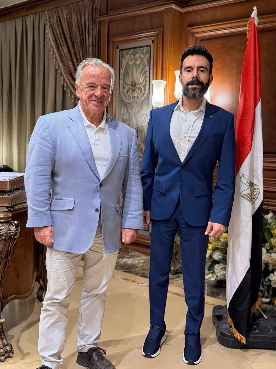 عقد إسلام قرطام رئيس الاتحاد المصري لرياضات الشارع واللياقة البدنية والتنافسية اجتماعاً مع رئيس الاتحاد الدولي لكمال الأجسام الإسباني رافاييل سانتونجا، على هامش زيارة الأخير لمصر لحضور عدد من الفعاليات الرياضية.