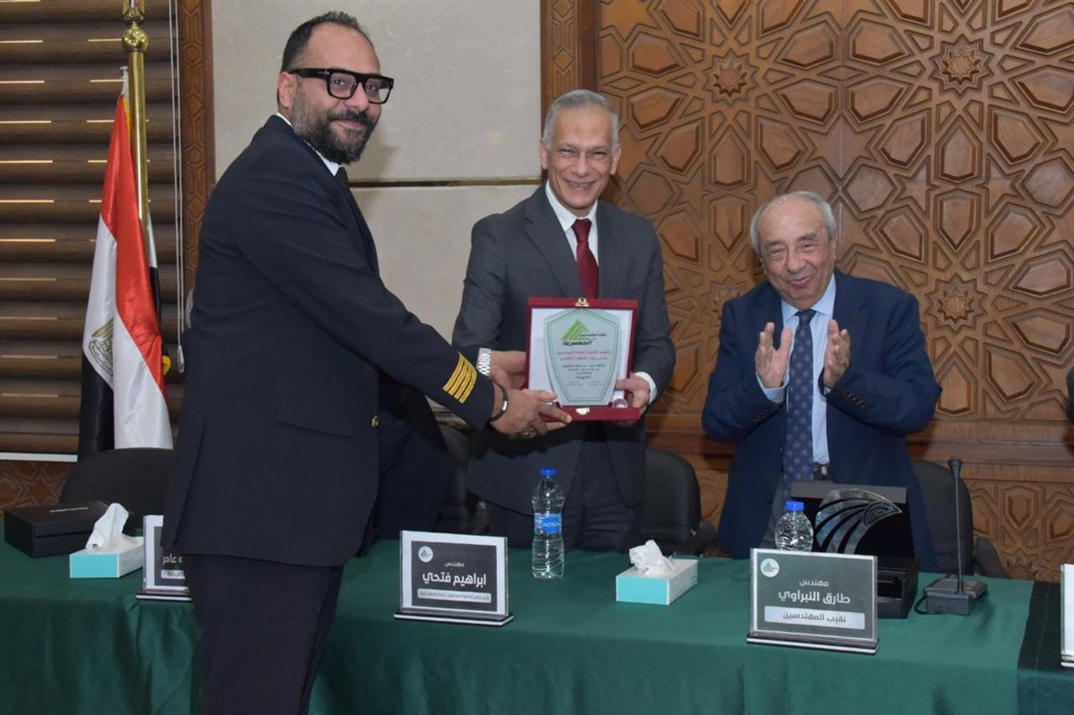 كما قام المهندس طارق النبراوي نقيب المهندسين المصريين ورئيس اتحاد المهندسين العرب بتكريم السادة مهندسي شركة مصر للطيران للصيانة والأعمال الفنية المشاركين في تحديث النظام التقني لطائرات ايرباص A320 والبالغ عددهم 16 مهندسا.