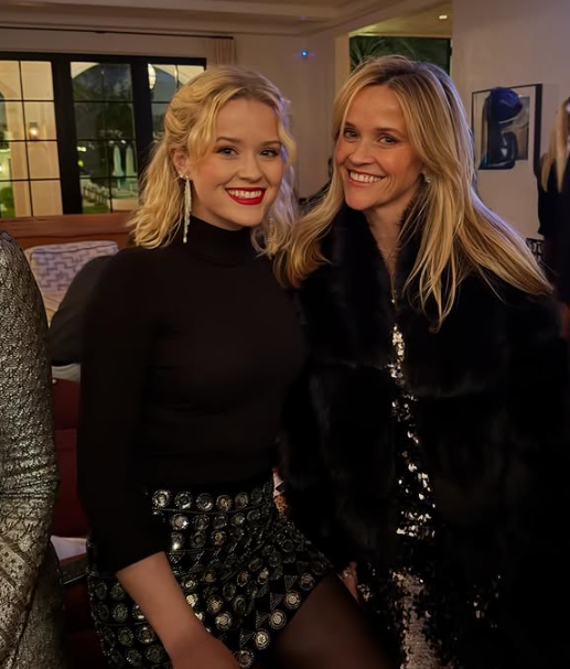ظهرت ريس ويذرسبون وابنتها آفا فيليب في إحدى الصور بإطلالة متطابقة تقريبا. وارتدتا ملابس سوداء ذات لمسات معدنية ما أبرز التشابه الكبير في الملامح وتسريحات الشعر وحتى تعابير الوجه.