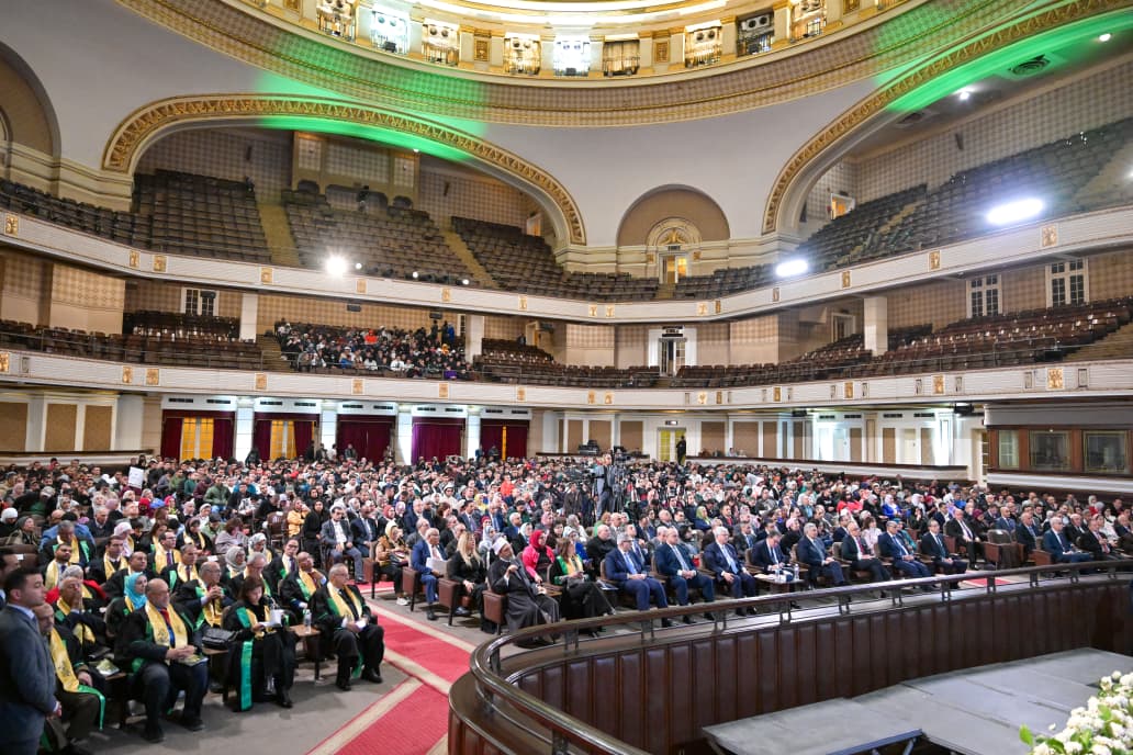 وقال الدكتور خالد عبدالغفار نائب رئيس الوزراء للتنمية البشرية ووزير الصحة والسكان، إن قاعة الإحتفالات الكبري بجامعة القاهرة تم افتتاحها عام 1935، وشهدت احتفالات ولقاءات للعديد من رؤساء الدول تسارعوا على التواجد تحت هذا المكان الهام علي المستوي العالمي وليس فقط على مستوى مصر ، وهي تُعد رمزًا للدولة المصرية التى كانت ولا تزال منارة للتنوير والعلوم، مؤكدًا أن الجامعة ليست مكانا لتخريج المتميزين فقط، بل تلعب دورًا أساسيًا في بناء الانسان ورأس المال البشرى، بالإضافة إلى تحفيز الابتكار وريادة الأعمال وخدمة المجتمع.