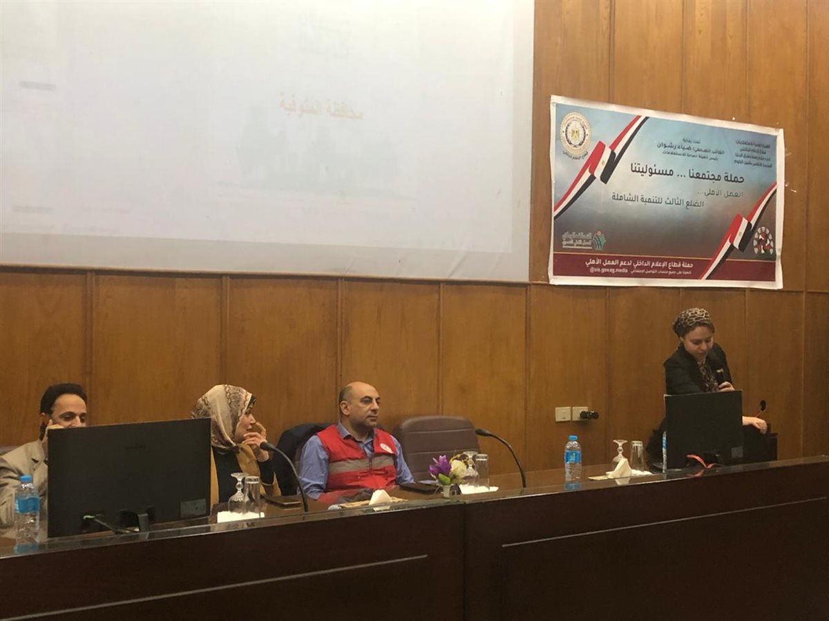 انطلق اللقاء بعنوان العمل التطوعي حياة كريمة لوطن يستحق وبالتعاون مع جامعة المنوفية قطاع التعليم والطلاب مركز القيادات الطلابية ومؤسسة حياة كريمة بالمنوفية وجمعية الهلال والأحمر المصرى بالمنوفية ومديرية الشباب والرياضة بالمنوفية ومديرية التربية والتعليم المشاركة المجتمعية حيث استهدف اللقاء توحيد الرسائل التوعوية حول قيمة العمل التطوعي ودوره المحوري في خدمة المجتمع