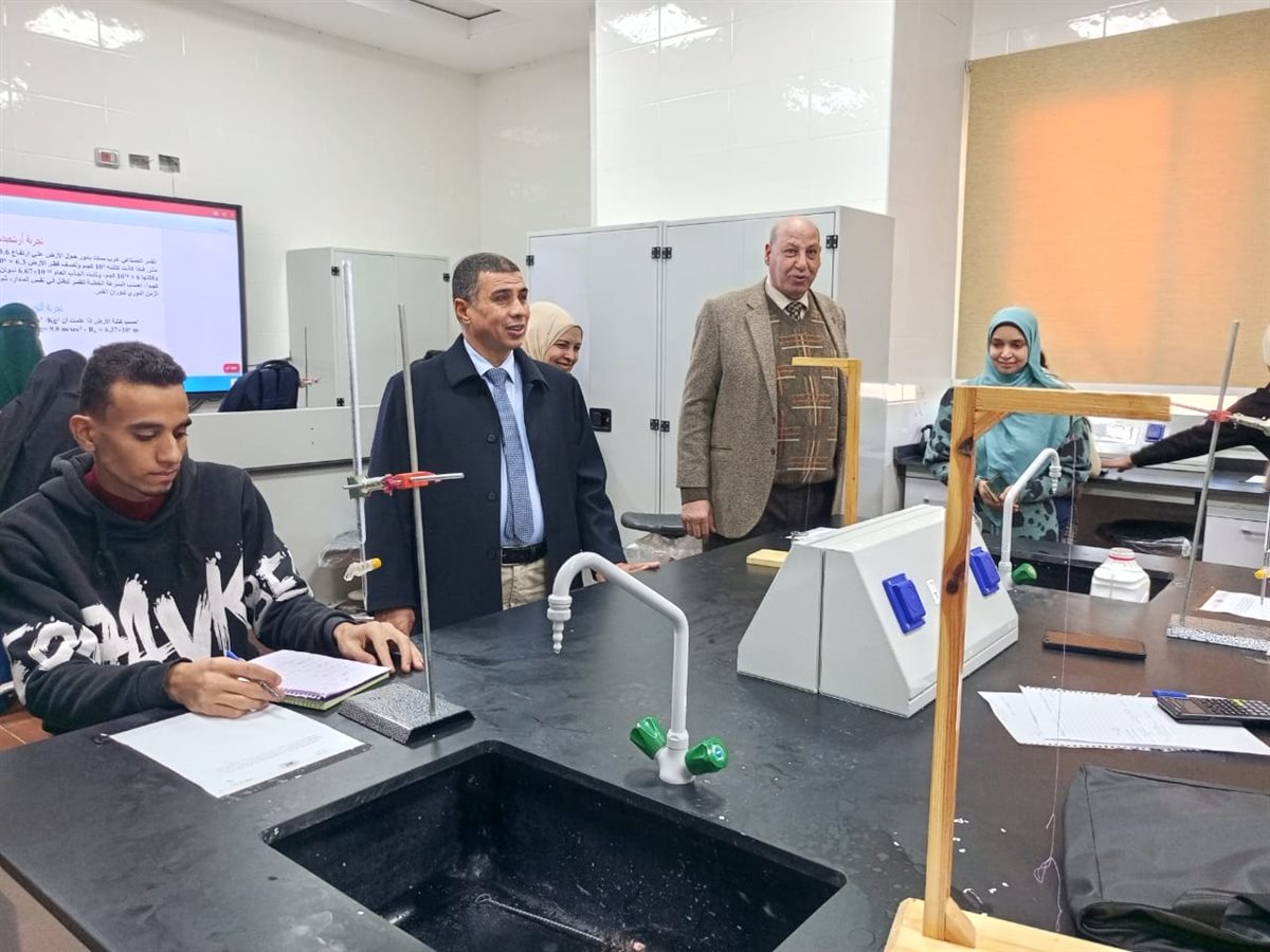 بدأت الجولة بتفقد أعمال امتحانات كلية تكنولوجيا الصناعة والطاقة، واطلع رئيس الجامعة ونائبه على آليات الامتحانات، ومدى التزام الطلاب بالإجراءات التنظيمية؛ ثم تفقدا أعمال امتحانات كلية العلوم الصحية التطبيقية، واستمعا إلى ملاحظات عدد من الطلاب حول طبيعة الامتحانات ومدى توافقها مع ما تم تدريسه خلال الفصل الدراسي.