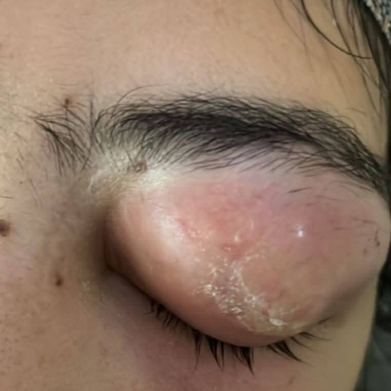 وقد حضرت المريضة إلى قسم الطوارئ بالمستشفى وهي تعاني من خراج شديد بالحجاج، أدى إلى فقدان تام للرؤية بالعين المصابة، وبعد إجراء الفحوصات الطبية والأشعة اللازمة، تبيّن وجود التهاب صديدي حاد بالجيب الأنفي الجبهي أعلى العين اليسرى.