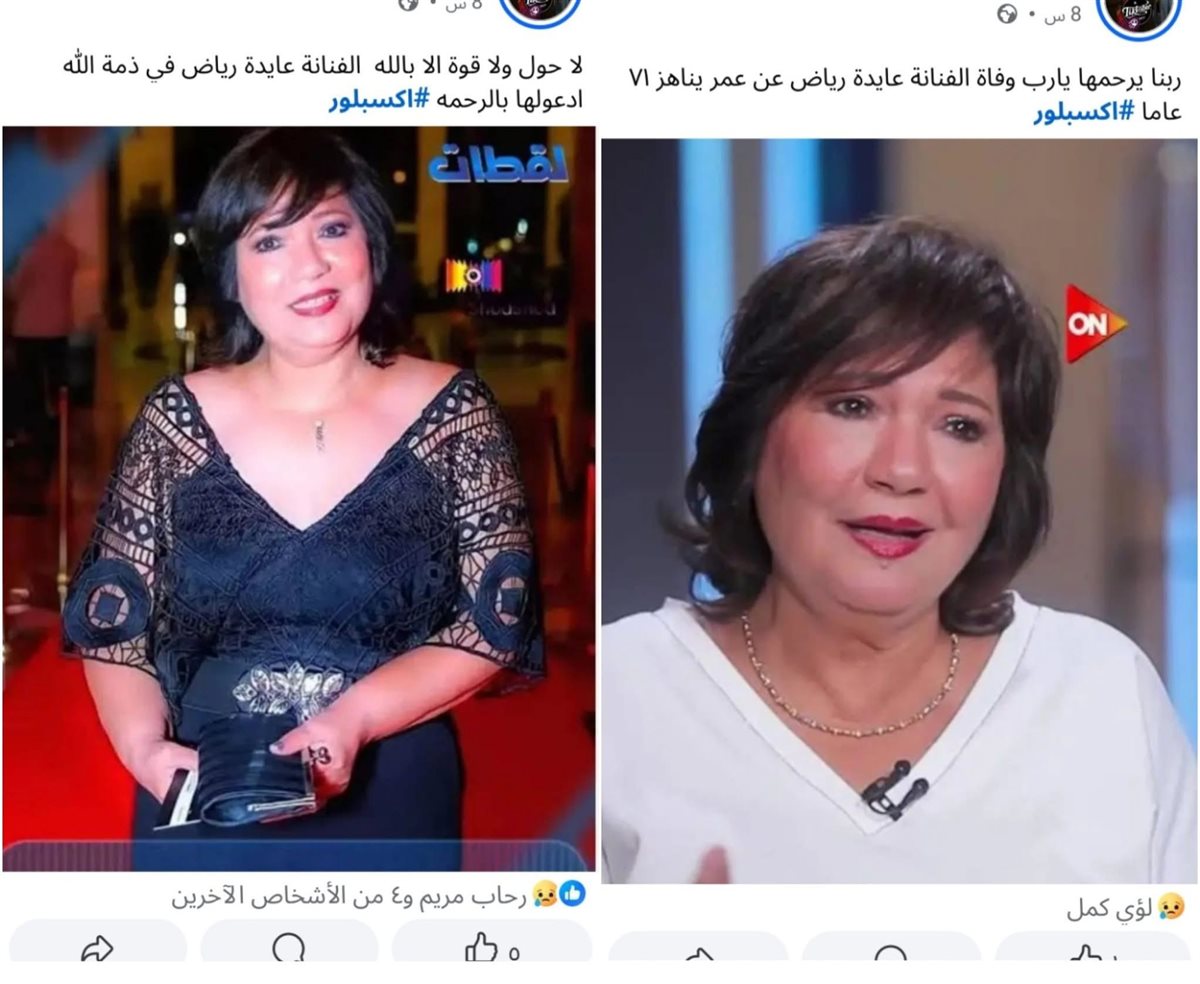سرعان ما خرجت عايدة رياض لتعلق بنفسها على شائعة وفاتها معربة عن استيائها الشديد من تلك المزاعم المتداولة تحت عنوان “عايدة رياض في ذمة الله”، وذلك خلال منشور عبر حسابها الشخصي بموقع التواصل الإجتماعي الأشهر “فيس بوك”.