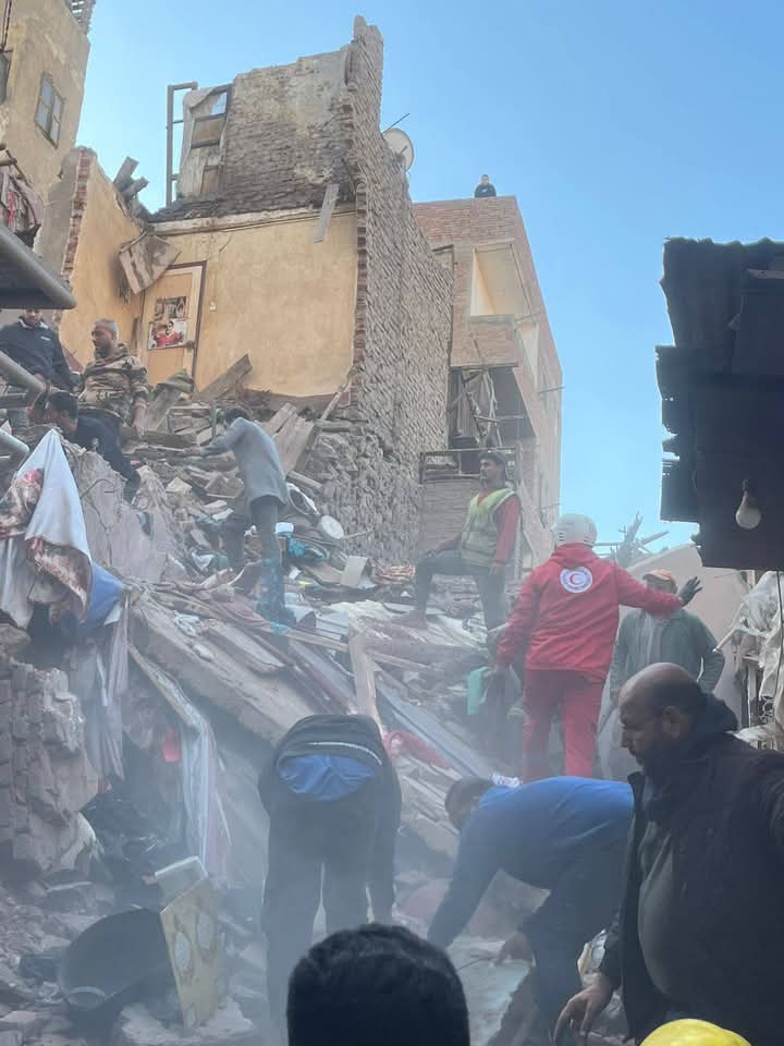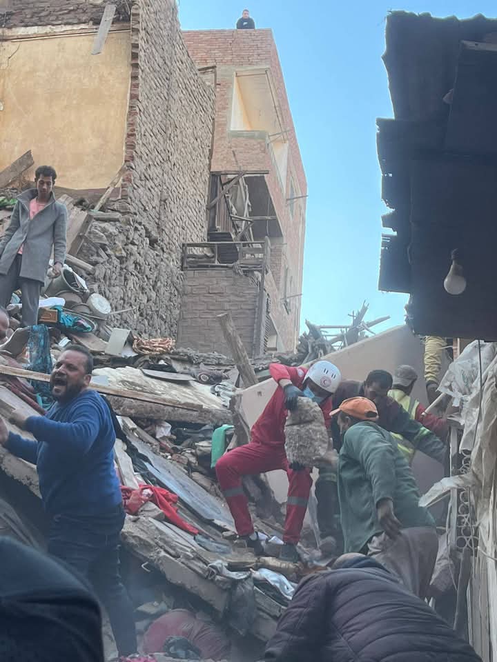 كثفت فرق الاستجابة للطوارئ التابعة للهلال الأحمر المصري تحركاتها لتقديم المساعدات الفورية للمصابين، شملت إسعافات أولية متنوعة للتعامل مع كسور وجروح وارتجاج بالمخ، إضافة إلى خدمات الدعم النفسي لمواجهة صدمة الحادث، وسط حالة من الحزن والألم التي تعم موقع الانهيار.