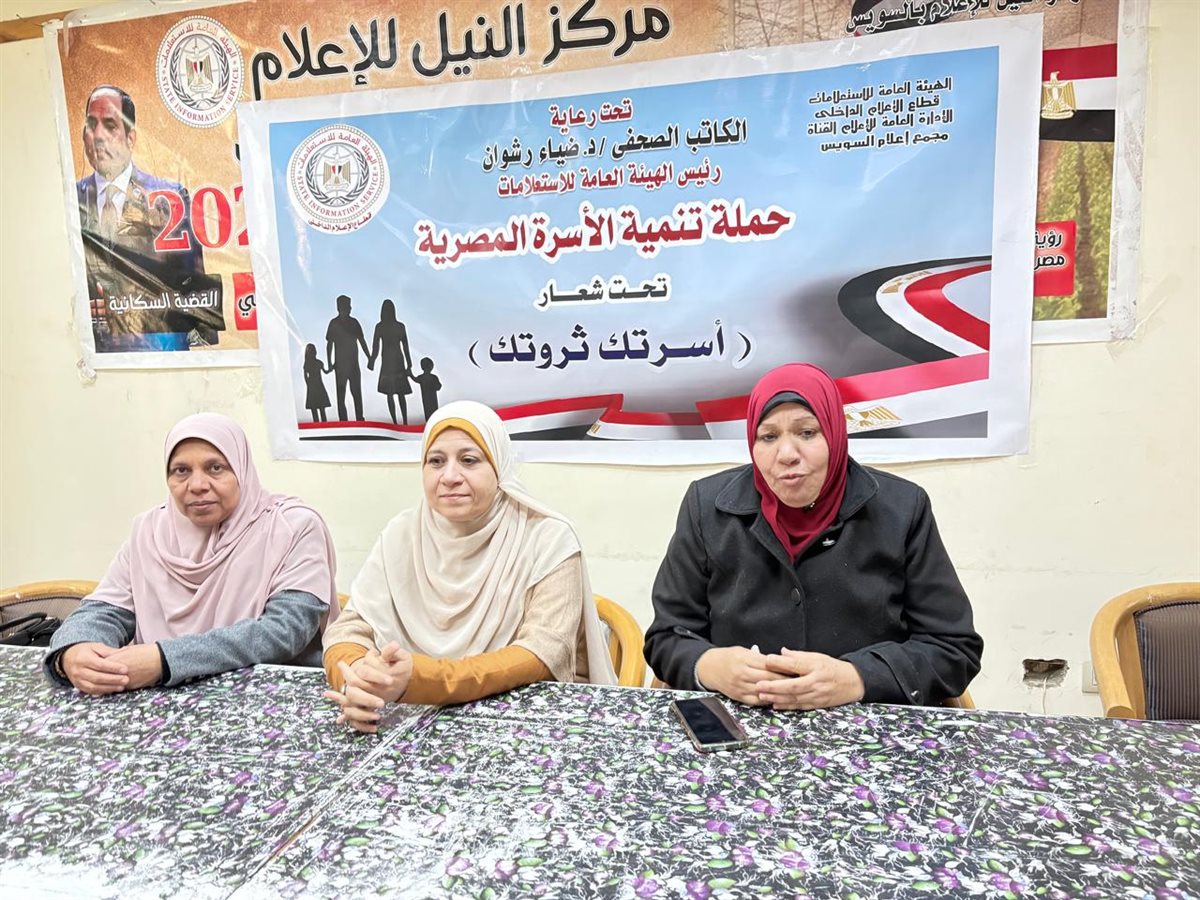 حاضر في الندوة سيدة الرفاعي مدير عام الهيئة العامة لمحو الأمية بالسويس وعبير علي أمين مدير عام المجلس القومي للسكان بالسويس.