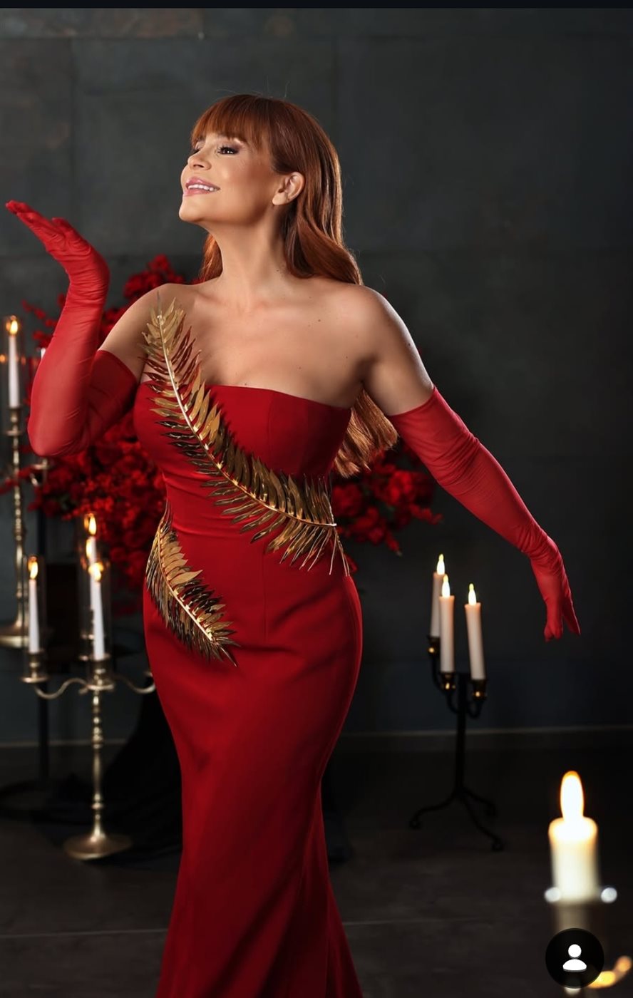 وبدت كارول سماحة بإطلالة ساحرة، مفعمة بالأناقة والرومانسية بقصة الكب، مرتديه فستان طويل مجسم، ونسقت معه جوانتي الطويل لتواكب موضة فساتين 2025.2026، صمم بأسلوب جذاب وناعم من قماش الكريب باللون الأحمر الصارخ لتشبه زهرة الحب في بستان الزهور.