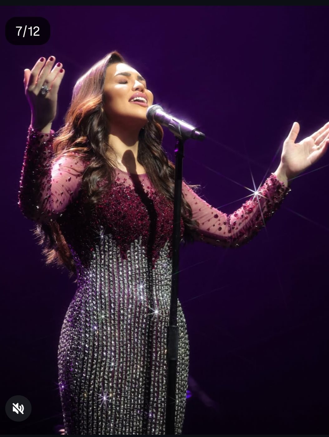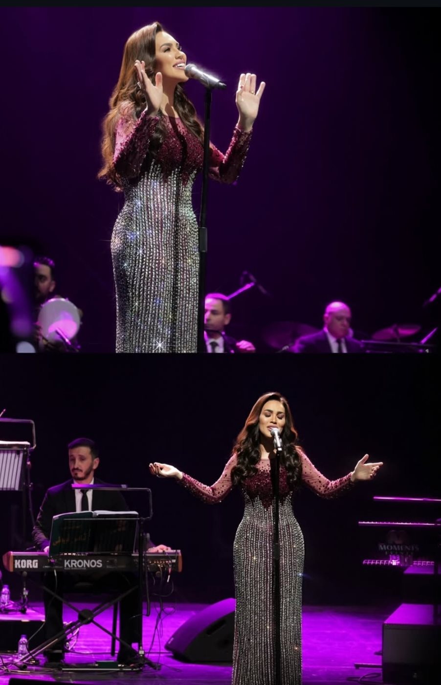 نجحت مي فاروق في خطف قلوب جمهورها بإطلالتها الساحرة المواكبة لأحدث صيحات موضة فساتين خريف و شتاء 2025.2026، خلال أحيائها حفلها الغنائي، مرتدية فستان طويل مجسم بأكمام طويلة، صمم من قماش مطرز بحبيبات الكريستال مع التل بلون البرغندي، تصميم الفستان عكس قوامها الرشيق ووزنها المثالي بشكل ناعم وجذاب.