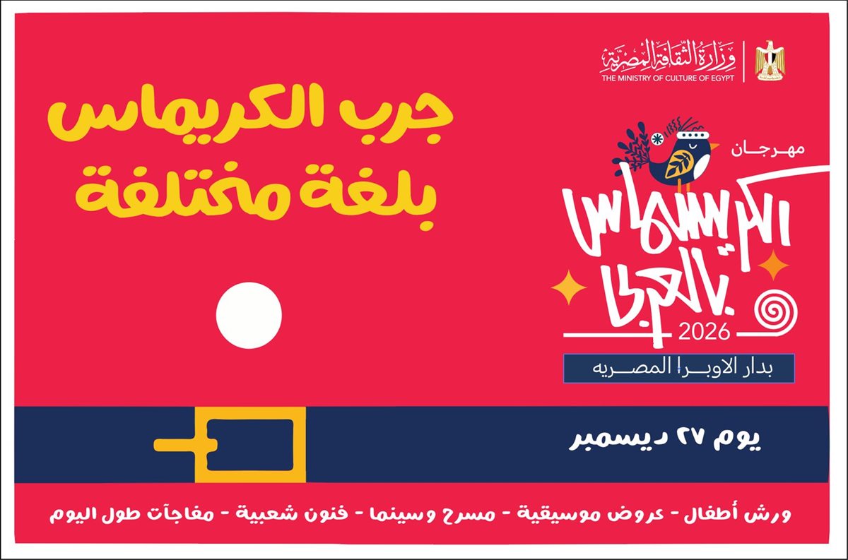 تُنظم وزارة الثقافة، تحت رعاية الدكتور أحمد فؤاد هنو وزير الثقافة، السبت 27 ديسمبر فعاليات “مهرجان كريسماس بالعربي” بمشاركة مختلف قطاعات الوزارة، وذلك اعتبارًا من الحادية عشرة صباحًا على عدد من مسارح وساحات دار الأوبرا المصرية.