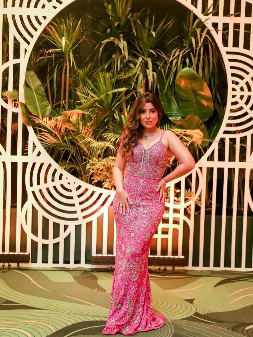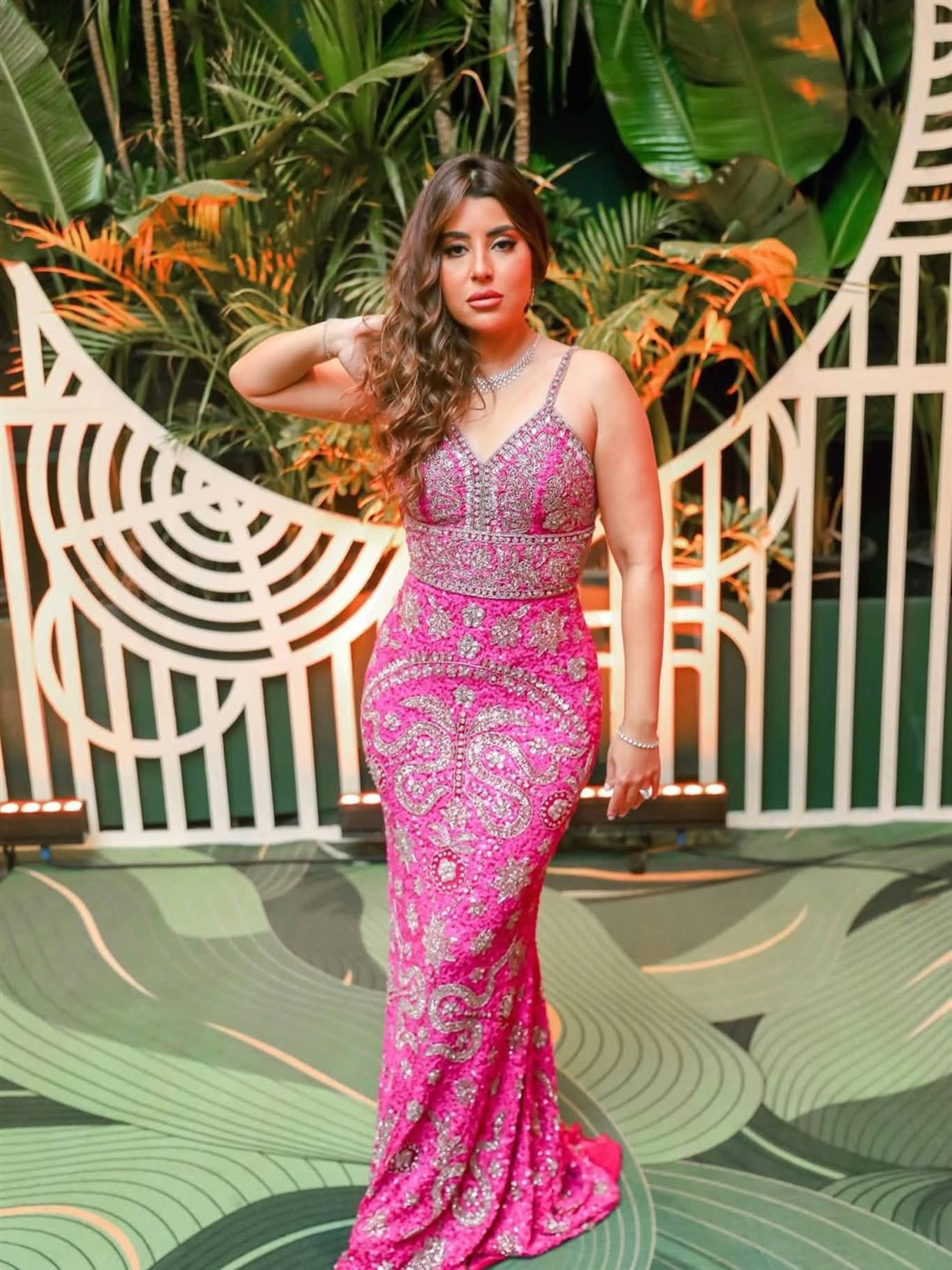 أيتن عامر تستعرض رشاقتها بالفوشيا المطرز