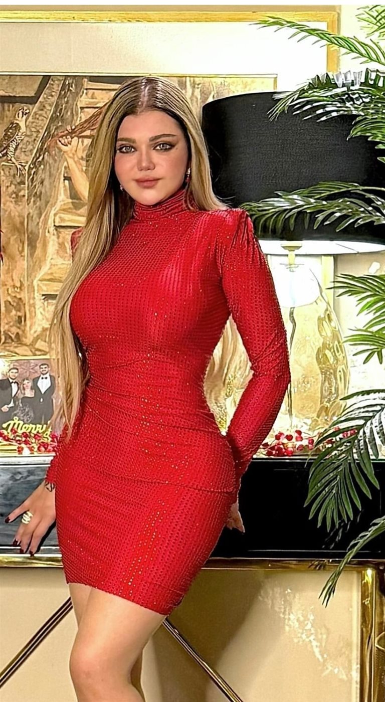 وبدت ياسمين الخطيب بإطلالة ساحرة، تنتضج بالرومانسية توهج اللون الأحمر، تتناغم مع الاحتفال بالكريسماس، مرتديه فستان مجسم قصير، بأكمام طويلة، صمم الفستان من قماش ناعم اللون الأحمر، الفستان حمل توقيع مصمم الأزياء أحمد عبدالله، الذي اعتاد على أظهار سحر منحنيات قوامها بشكل جذاب وناعم.
