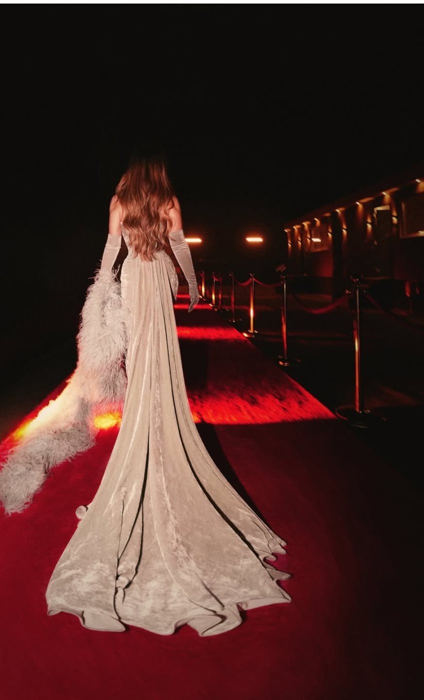 ونجحت نجوى كرم ان تخطف قلوب جمهورها قبل انظارهم بإطلالتها الساحرة، التي مزجت بين الفخامة والأناقة في آن واحد، مرتديه فستان طويل مجسم ينتمي لقصة الكورسية مع الكب صمم الفستان من قماش المخمل الناعم لتواكب موضة فساتين خريف وشتاء 2025-2026 وتستعرض قوامها الرشيق دون تكلف، واتسم الفستان بالفقازات الطويلة، ونسقت الريش الناعم مع إطلالتها.