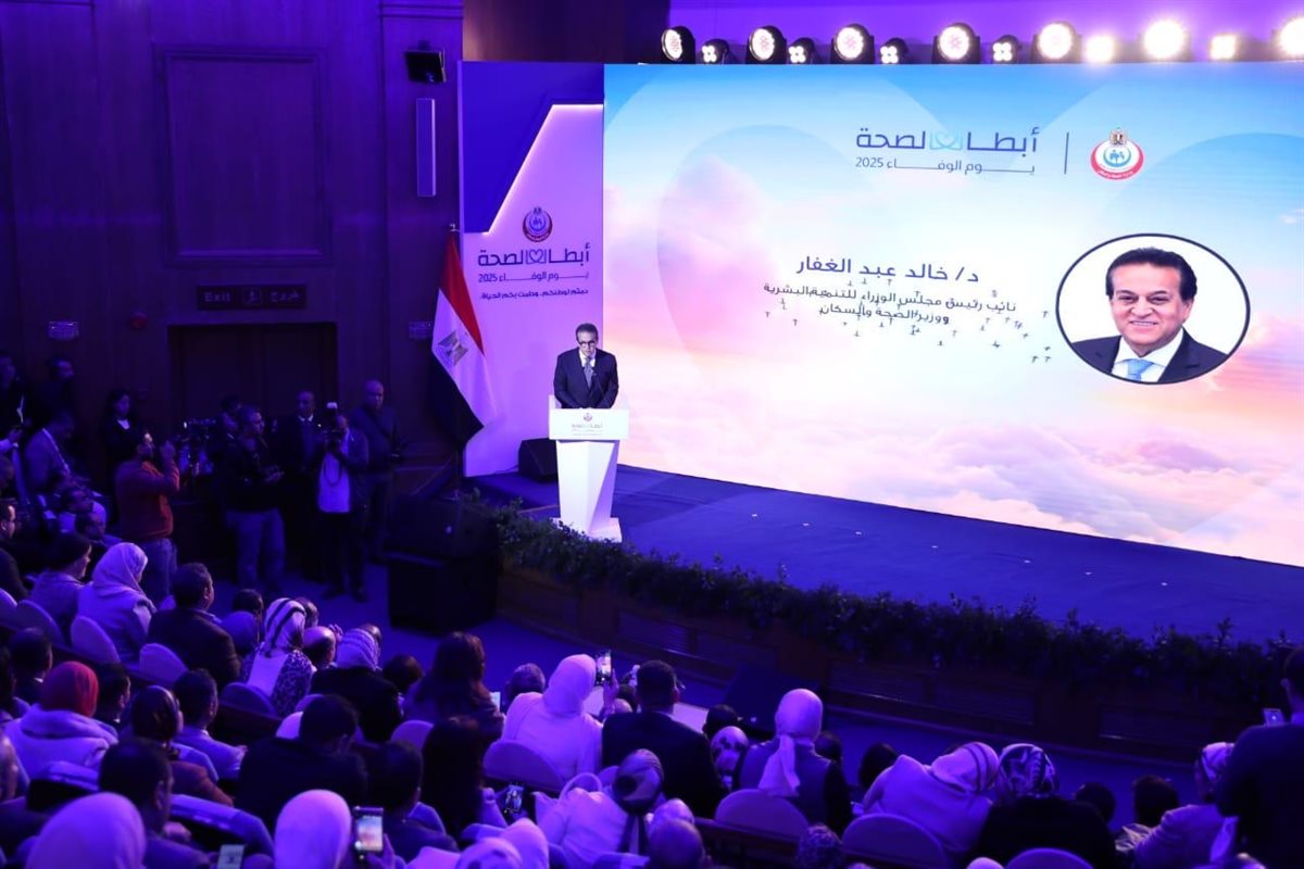 وفي كلمته خلال احتفالية التكريم، أكد الدكتور خالد عبدالغفار، أن القطاع الصحي يضم أكثر من مليون كادر طبي وإداري وفني يعملون بتناغم داخل الوزارة والهيئات التابعة، مؤكدا مواصلتهم رسالتهم الوطنية رغم التحديات الاستثنائية والتضحيات المستمرة.