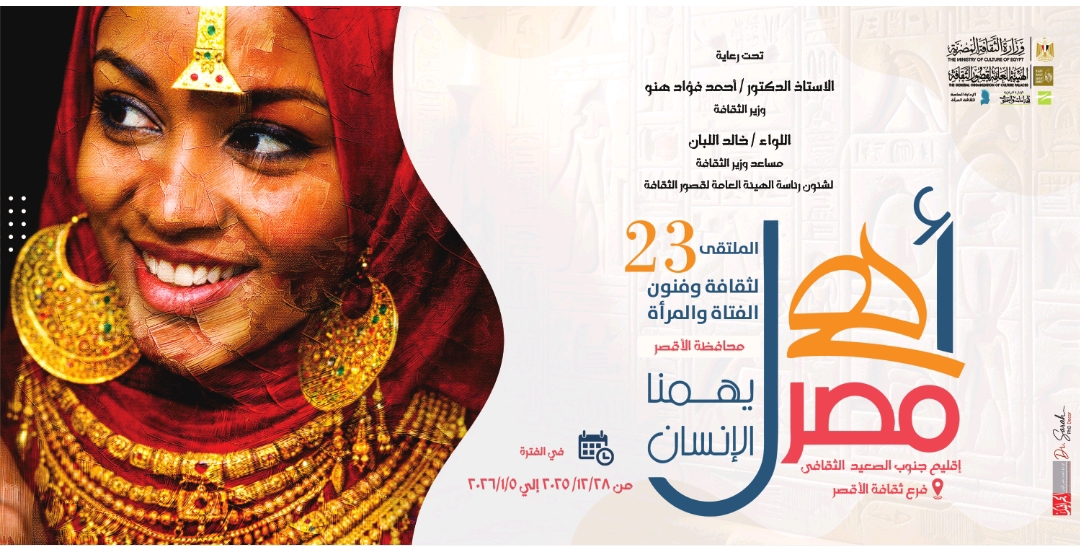 تحتضن محافظة الأقصر بقيادة المهندس عبد المطلب عمارة، اليوم الأحد، فعاليات الملتقى الثالث والعشرين لثقافة وفنون الفتاة والمرأة، والذي يقام تحت رعاية الدكتور أحمد فؤاد هنو وزير الثقافة، وتنظمه الهيئة العامة لقصور الثقافة برئاسة اللواء خالد اللبان،  تحت شعار "يهمنا الإنسان"، ضمن مشروع "أهل مصر"، متضمنًا برنامجًا ثقافيًا وفنيًا متكاملًا يجمع بين الورش الإبداعية، والندوات الفكرية، والزيارات الميدانية للمواقع الأثرية والتراثية.