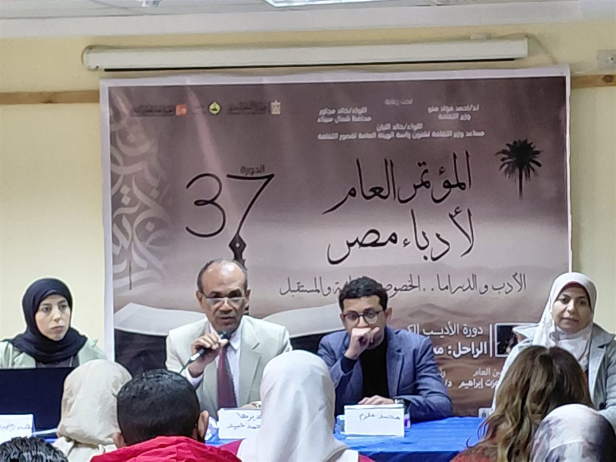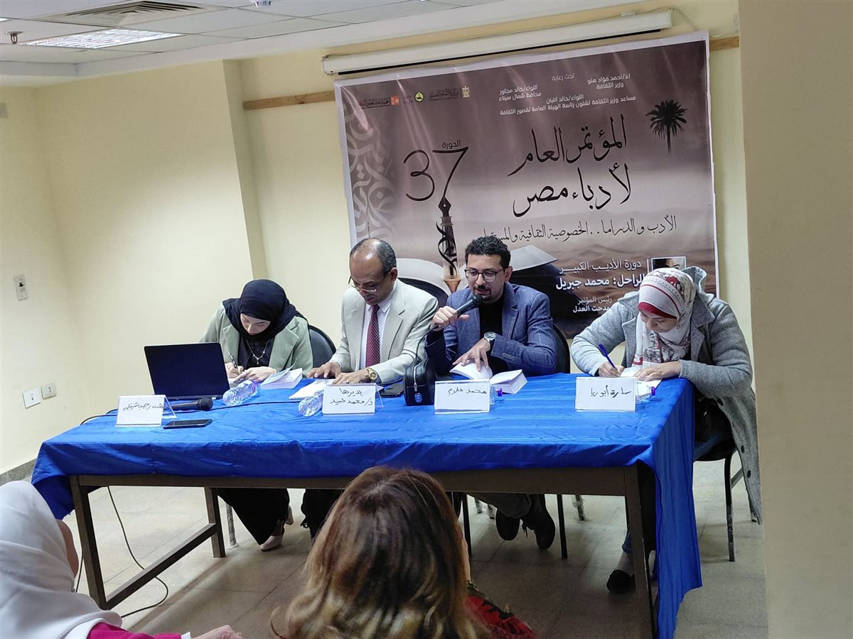 في مستهل اليوم الثالث لانطلاق فعاليات المؤتمر العام لأدباء مصر، بشمال سيناء، شهدت قاعة المحاضرات بقصر ثقافة العريش انعقاد الجلسة البحثية الخامسة، التي جاءت تحت عنوان "المعالجات الدرامية للنص الأدبي في الوسائط الفنية المختلفة"، وأدارها الدكتور صلاح سلام.