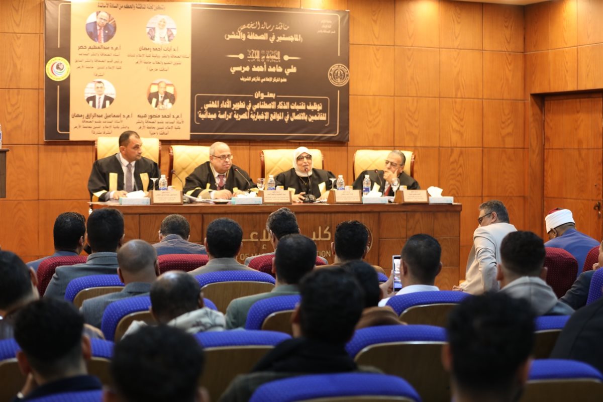 حصل الباحث علي حامد أحمد مرسي، عضو المركز الإعلامي بالأزهر الشريف، على درجة الماجستير بتقدير «ممتاز» من قسم الصحافة والنشر بكلية الإعلام بجامعة الأزهر، عن دراسته التي جاءت بعنوان: «توظيف تقنيات الذكاء الاصطناعي في تطوير الأداء المهني للقائمين بالاتصال في المواقع الإخبارية المصرية».