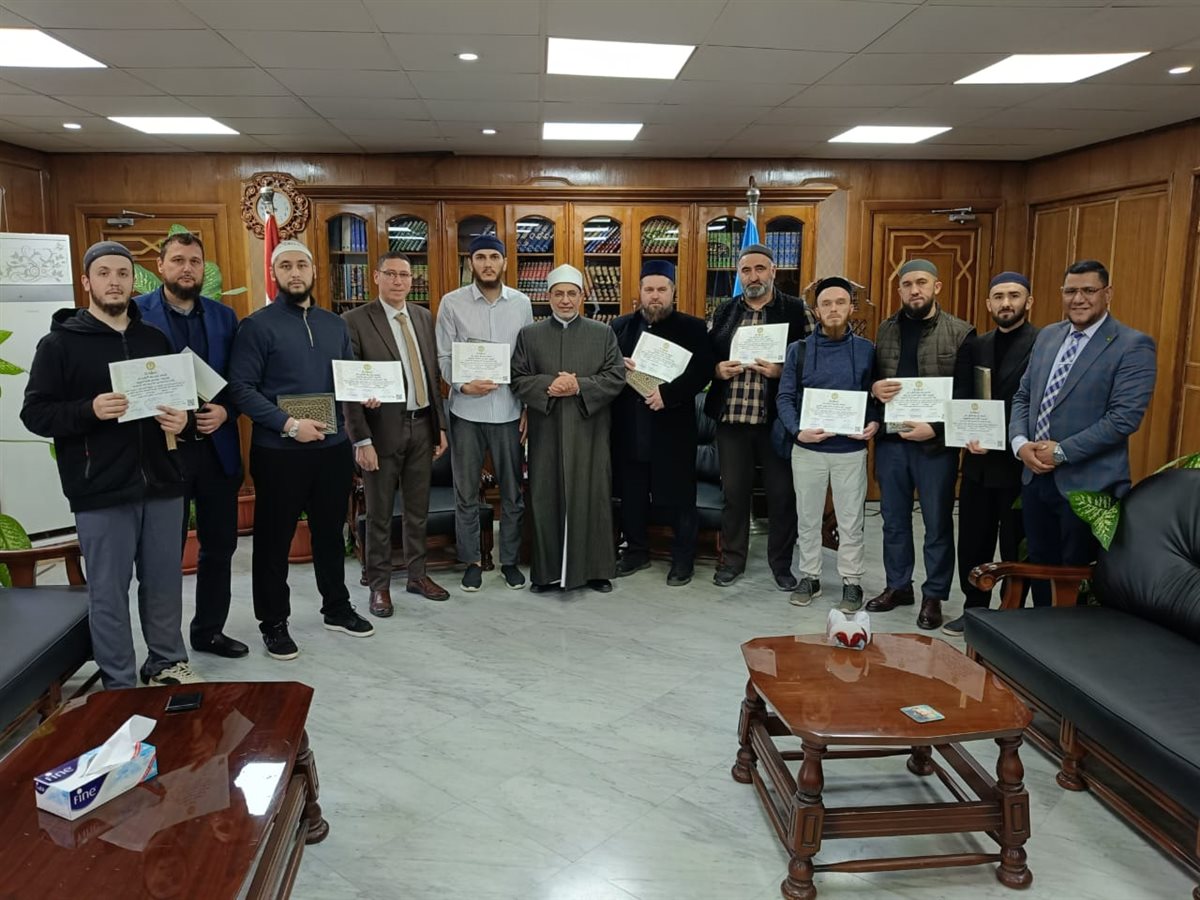 وقدَّم رئيس الجامعة التهنئة إلى باحثي تتارستان بمناسبة انتهاء الدورة التدريبية الخاصة بهم التي استمرت أسبوعين، وحاضر خلالها نخبة متميزة من كبار العلماء في جامعة الأزهر في مختلف المجالات العلمية.