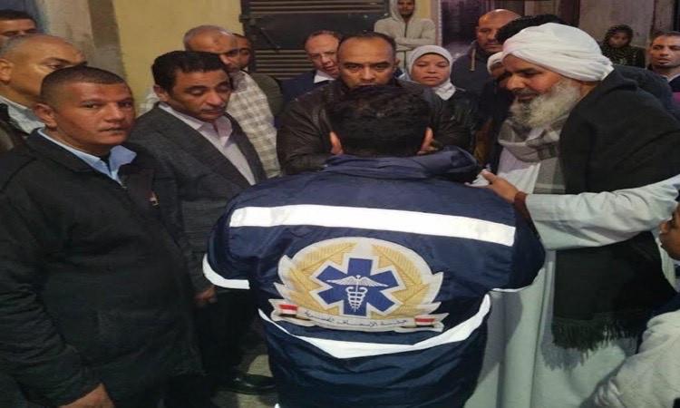 أجهزة المنيا تتابع حالة مصابين حادث مروري بالطريق الصحراوي