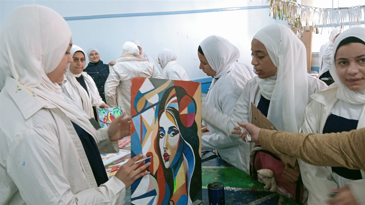 تفقد محمد ابراهيم دسوقى كذلك الورش الفنية واطلع على أعمال الطالبات في الرسم والخياطة والتلوين وأشاد بإتقان الطالبات وإبداعهن في تنفيذ المشاريع الفنية مشددا على أهمية تطوير مهارات الطالبات بما يواكب احتياجات سوق العمل ويعزز قدرة التعليم الفني على تقديم منتجات ذات جودة عالية