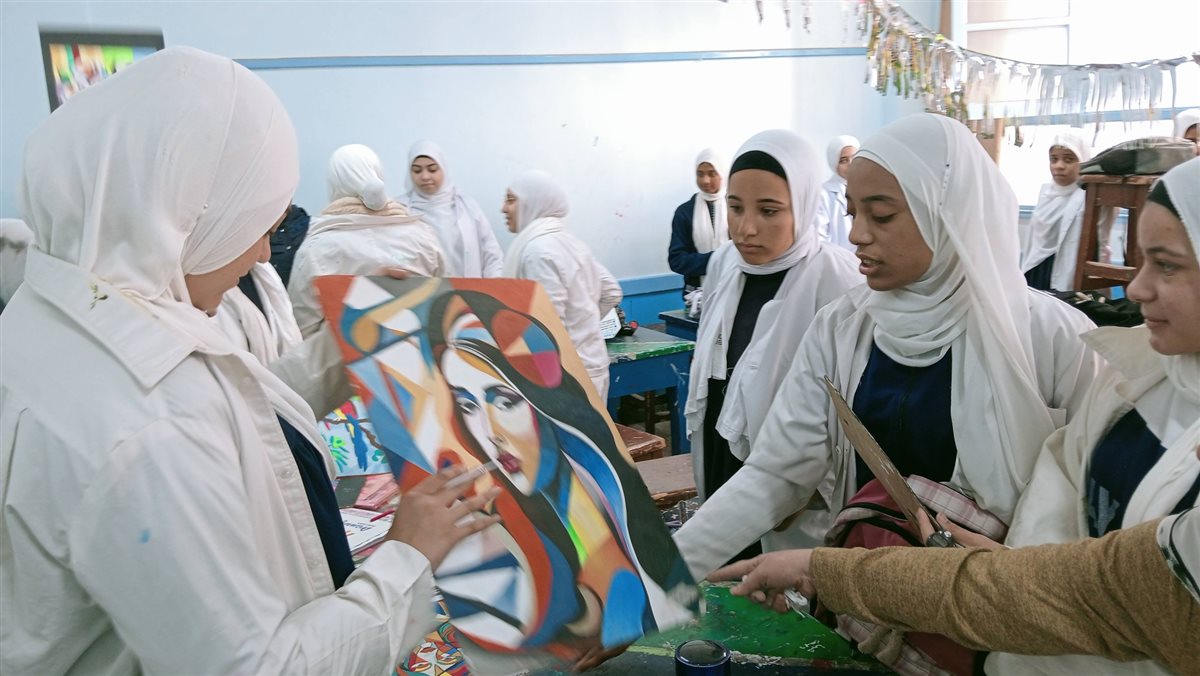 مدير تعليم أسيوط يشيد بالأعمال الفنية للطالبات في الثانوية الصناعية بنات