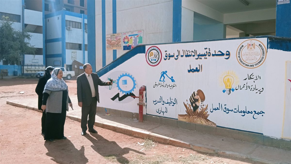 أجرى وكيل وزارة التعليم بأسيوط زيارة ميدانية للثانوية الصناعية بنات بحي شرق حيث تابع سير الدراسة وأعمال الطالبات الفنية والخياطة والرسم والتلوين