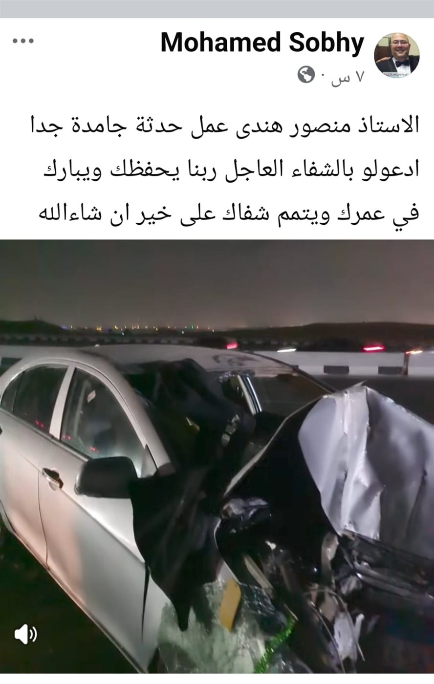 وجرى نقل منصور هندي إلى المستشفى فور وقوع الحادث، حيث يخضع حاليًا للرعاية الطبية والملاحظة المستمرة، ويقوم الأطباء بإجراء الفحوصات اللازمة للاطمئنان على حالته الصحية.