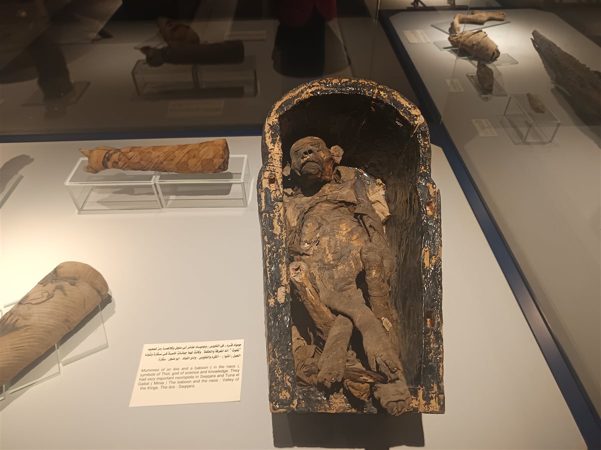 وتضمنت الجولة التعرف على عدد من القطع النادرة، من بينها الأواني الكانوبية المخصصة لحفظ الأحشاء، وتماثيل المعبود “أنوبيس” إله التحنيط وحارس الجبانة، إلى جانب مومياء “ماسحرتي” كبير كهنة آمون من الأسرة الحادية والعشرين، والتي تُعد من أبرز معروضات المتحف ونموذجًا فريدًا لإتقان فنون التحنيط.