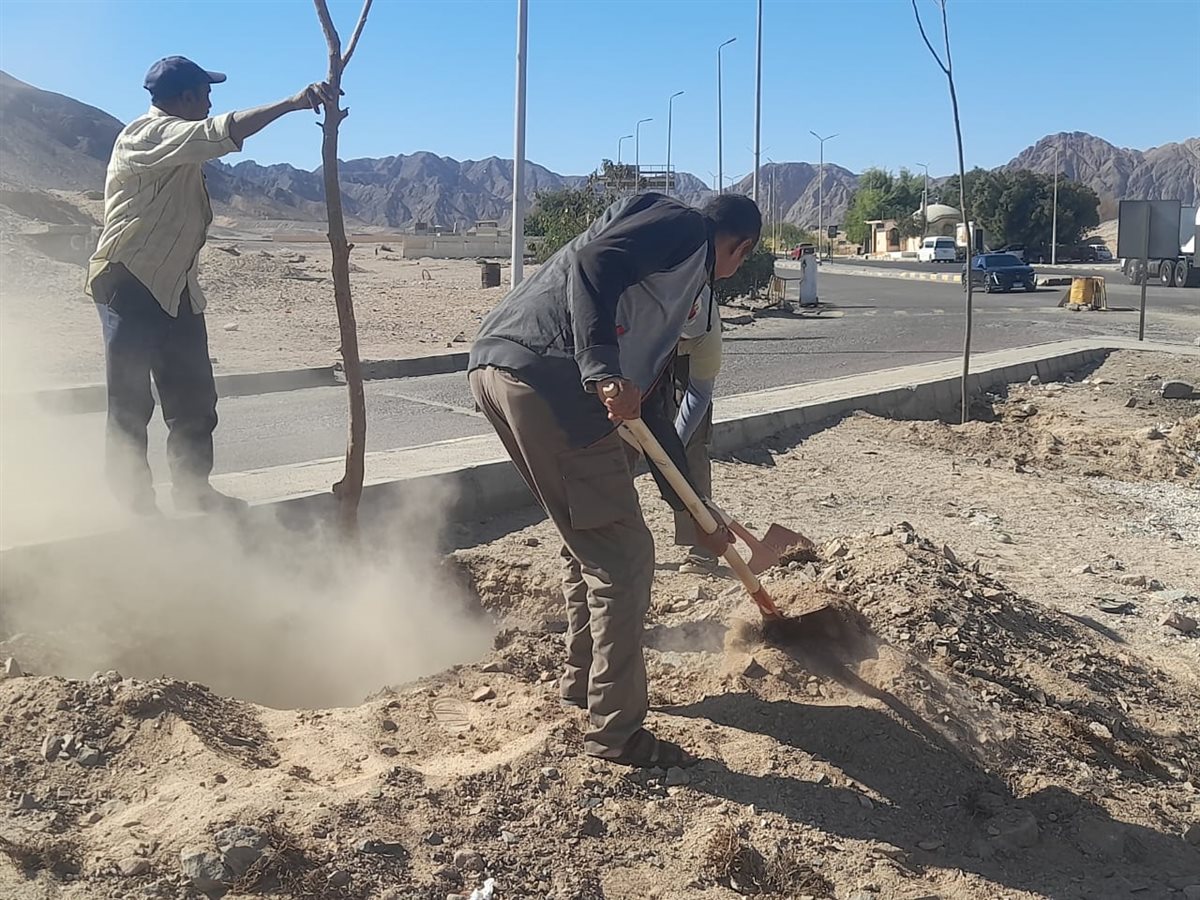 وشملت الأعمال زراعة أنواع متعددة من الأشجار الملائمة لطبيعة المناخ، مع مراعاة اختيار المواقع المناسبة لضمان استدامة الزراعة والحفاظ على المظهر الجمالي للشوارع والميادين، إلى جانب متابعة أعمال الري والصيانة الدورية.