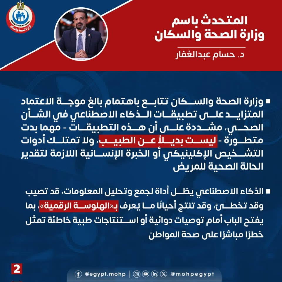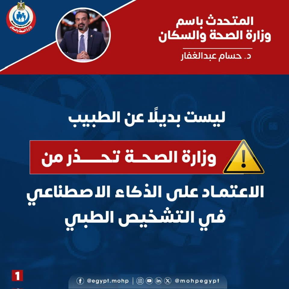 حياتك في خطر.. تحذير عاجل من "الصحة" للمواطنين بسبب التشخيص بالذكاء الاصطناعي (تفاصيل)