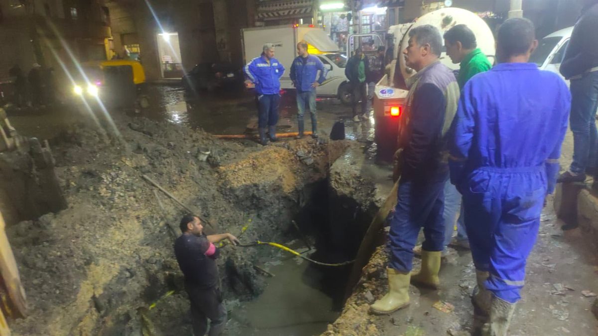 وتم الدفع بكامل أطقم الطوارئ والمهندسين والفنيين، مدعومين بالمعدات اللازمة وسيارات شفط المياه، للتعامل مع التراكمات الناتجة عن العطل ومنع تأثيرها على حركة المرور أو الصحة العامة بالمنطقة.