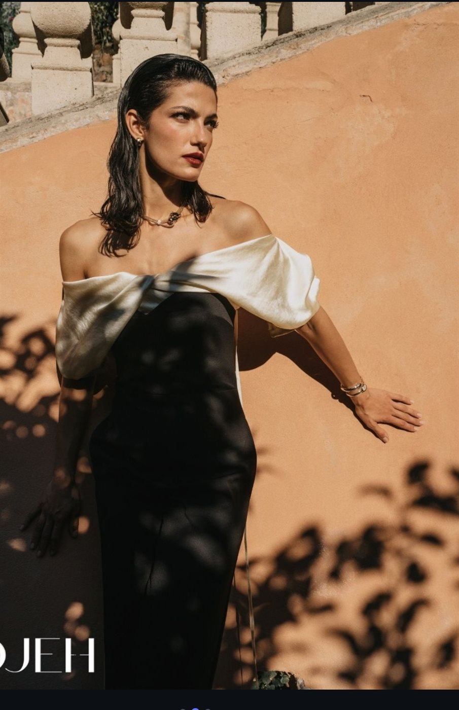 وبدت تارا عماد في أحدث ظهور لها بإطلالة كلاسيكية ساحرة، مفعمة بالتفاصيل الجذابة واناقة المرأة المصرية والعربية، مرتديه فستان طويل مجسم، ينتمي لقصة الاوف شولدر، صمم من قماش الساتان مع الحرير بمزج اللونين الأبيض في الأسود بشمل ساحر وجذاب.
