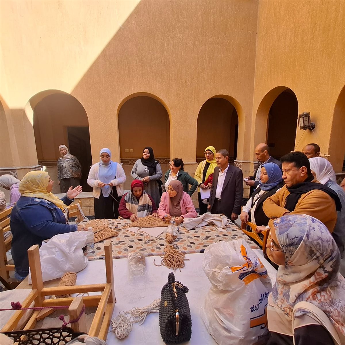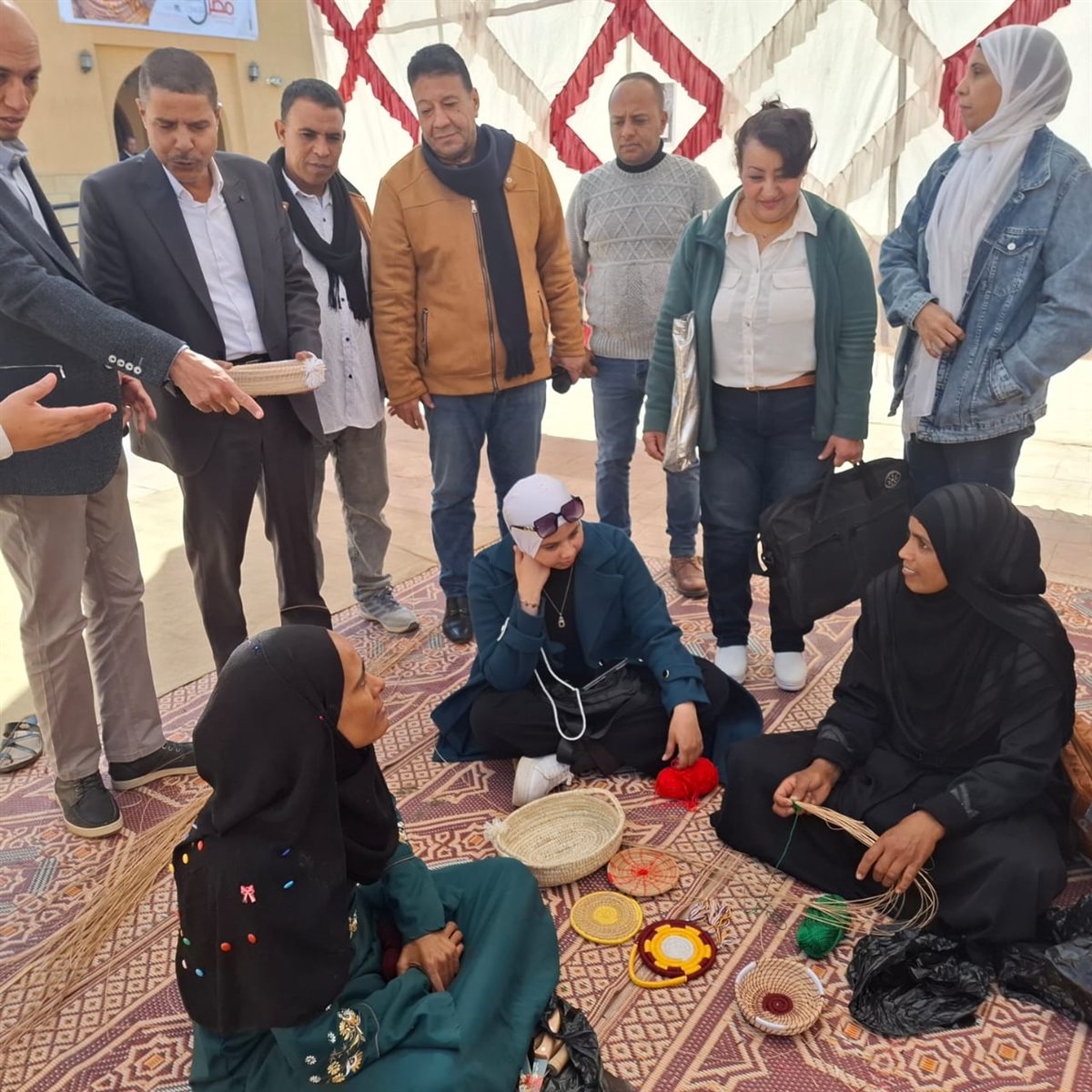 وعلى الجانب الفني، دربت نصرة محمود الفتيات على تنفيذ كوسترات وأطباق بأحجام متنوعة وذلك خلال ورشة "عرجون النخيل والخوص".