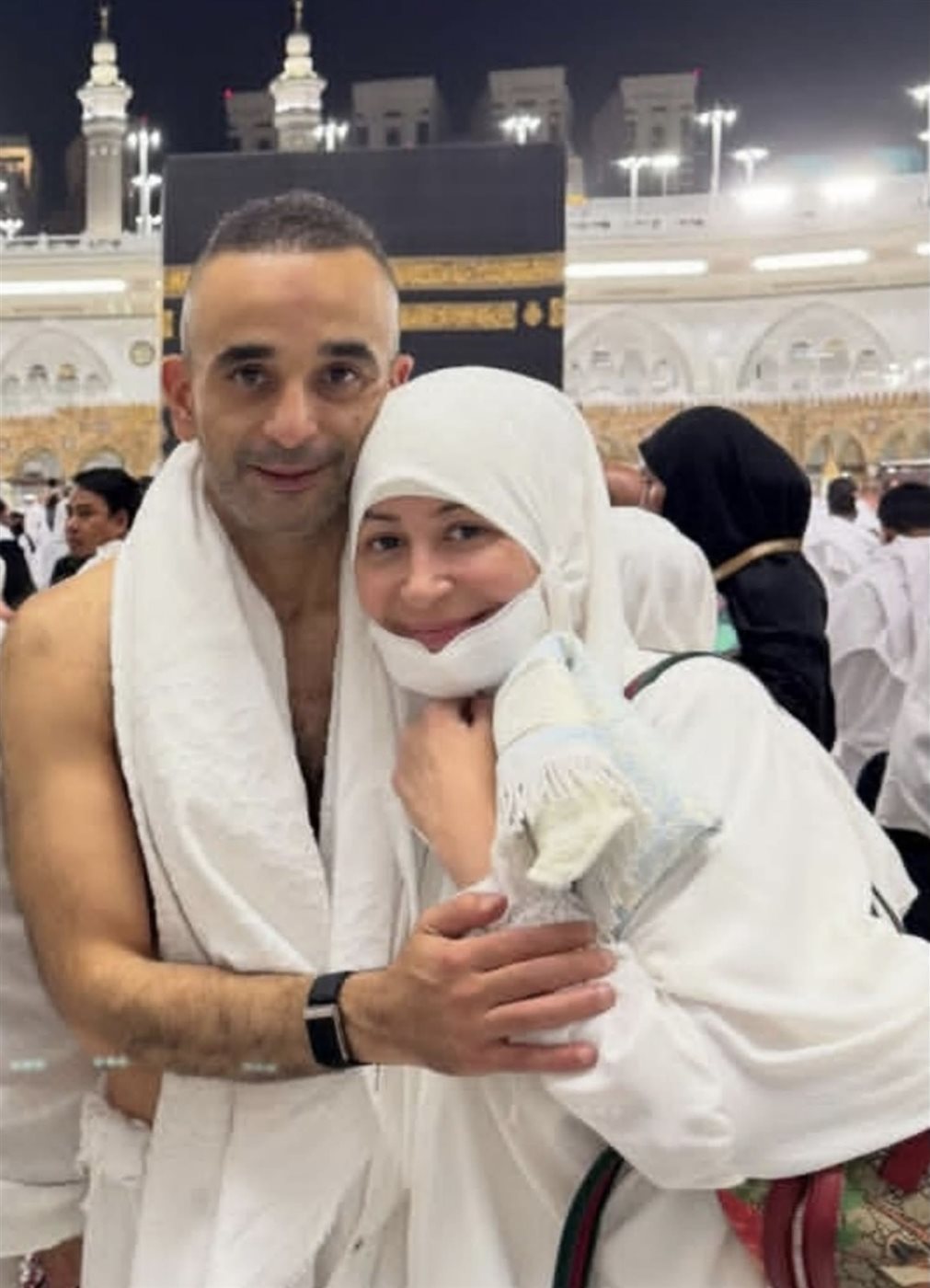 ظهرت منة شلبي وزوجها بملابس الإحرام، لتخطف الأنظار في ظهورها النادر بالحجاب.