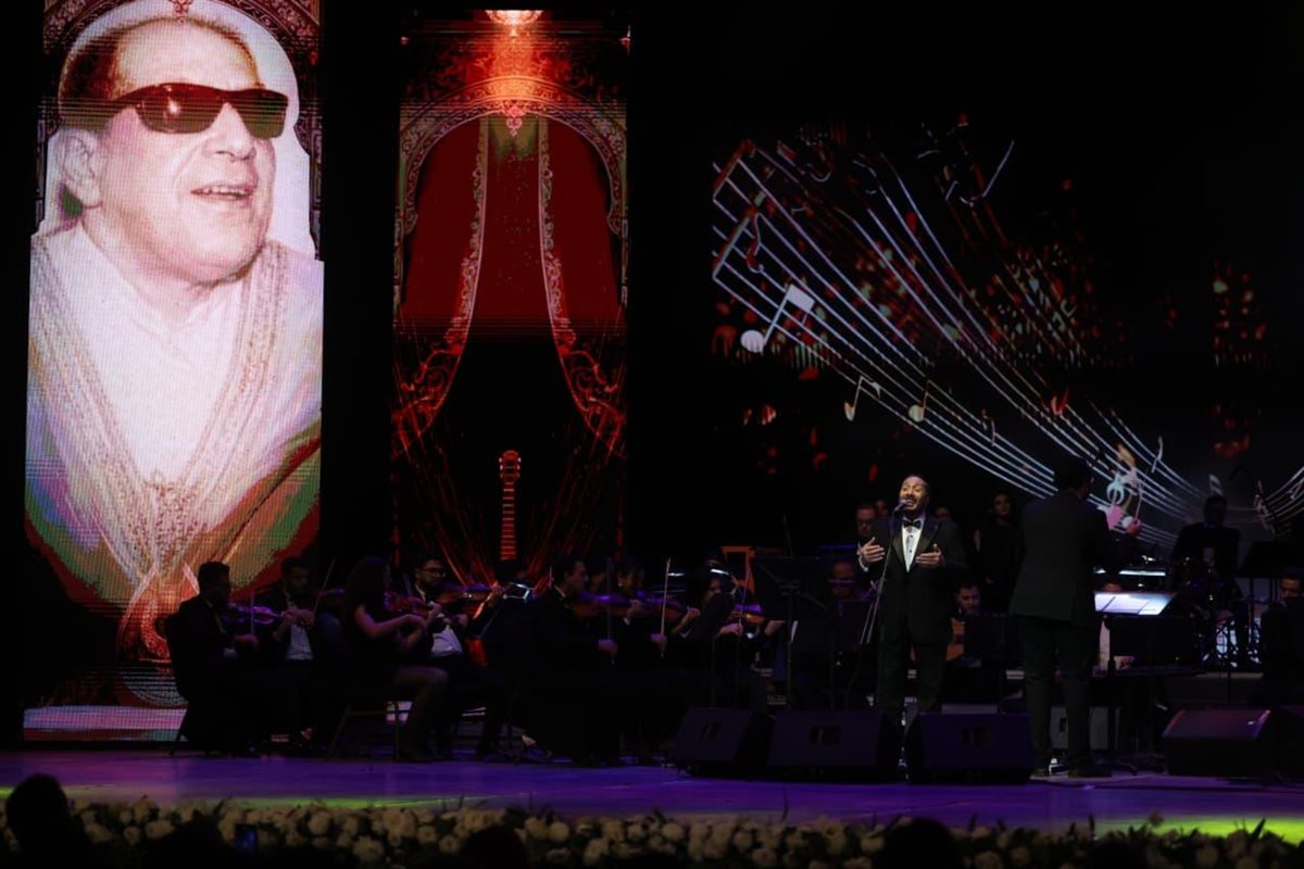 فعلى المسرح الكبير، ووسط حضور جماهيري ضخم، انسابت ألحان سيد مكاوي لتعيد إلى الذاكرة جُملاً موسيقية ارتبطت بأصوات أساطين الطرب، وبين المقامات الشرقية التي نجح في صياغة روائع خالدة من خلالها، تجول صوت الحجار وضيوفه عبر نغمات حملت مذاق الهوية المصرية، ليعانق الحاضر الماضي.