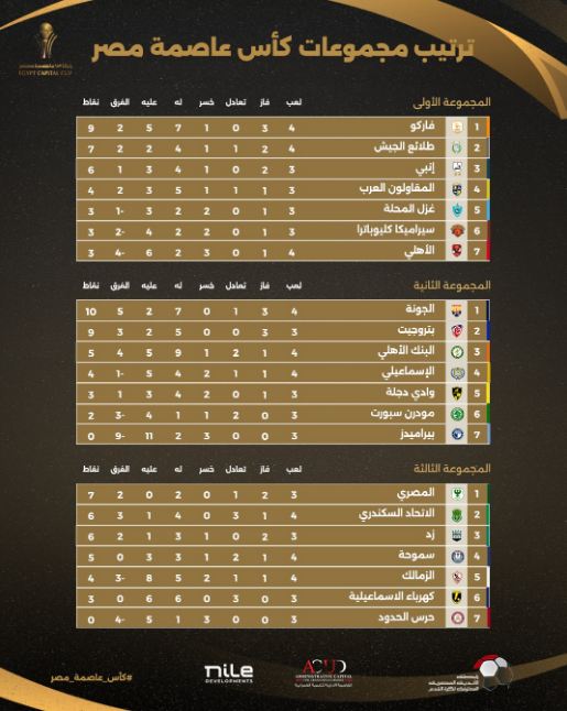 ترتيب مجموعات كأس عاصمة مصر قبل الجولة الخامسة: