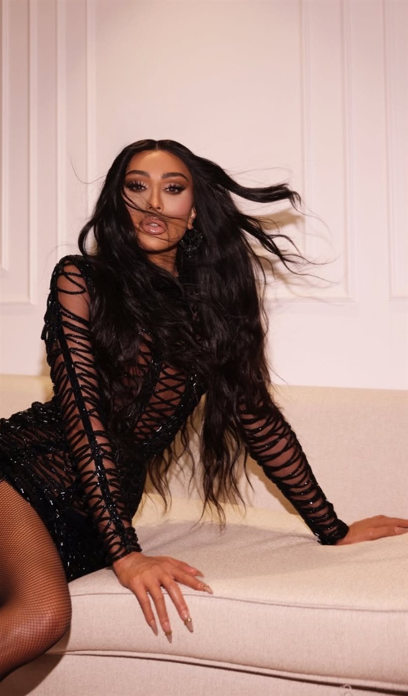 وبدت مايا دياب بإطلالة لافتة، مرتدية فستان قصير مجسم، صمم من قماش التل المطرز باللون الأسود اتسم الفستان ببطانة تحته بنفس لون الجسم لتثير حيرة جمهورها حول جرأة إطلالتها ونسقت معه شراب كولون شبيكة لتواكب موضة هذا العام.