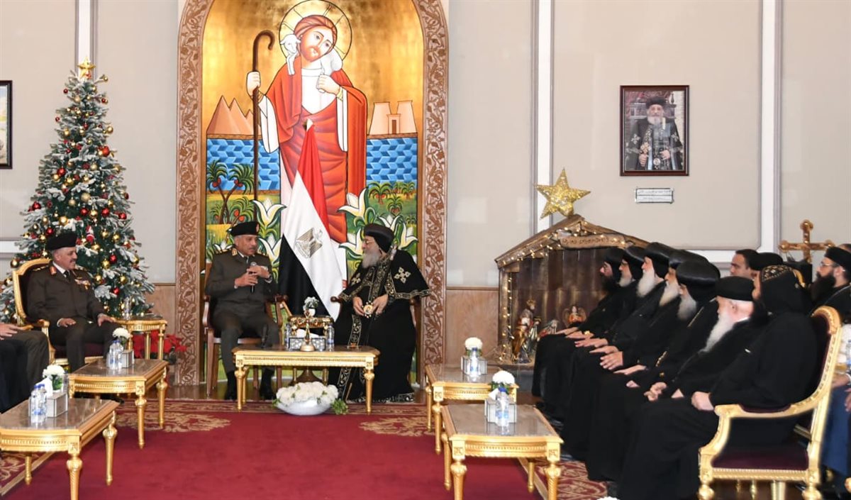 بالصور.. وزير الدفاع يتقدم وفد القوات المسلحة لتهنئة البابا تواضروس الثاني بـ عيد الميلاد