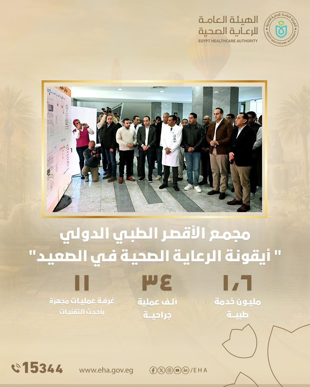 واختتم الانفوجراف بالتأكيد على أن هذه المؤشرات تعكس نموذجًا متكاملًا للمنشآت الطبية الحديثة، وتجسد رؤية الدولة في توطين الخدمات الطبية المتقدمة داخل صعيد مصر، وتحويل منظومة التأمين الصحي الشامل إلى واقع ملموس ينعكس مباشرة على جودة حياة المواطنين.