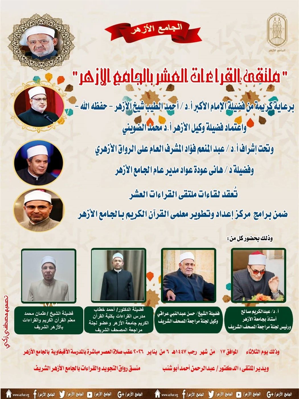 ودعا الدكتور عودة جميع المهتمين بعلوم القرآن الكريم، سواء كانوا طلابًا أو معلمين أو جمهورًا عامًا، للمشاركة في هذا الملتقى الفريد، حيث يُعتبر هذا الحدث فرصة قيِّمة للتعلم والتفاعل مع كبار المتخصصين في القراءات، مما يعزز من ترسيخ القيم القرآنية في المجتمع.