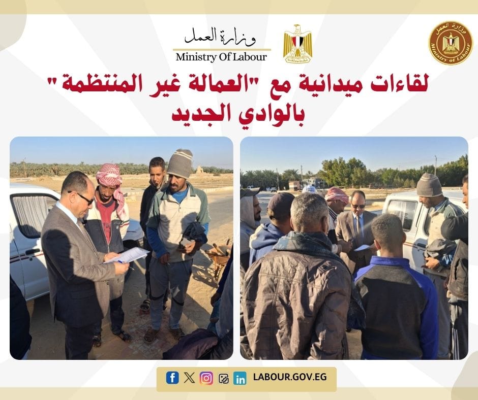 عقد أسامة إبراهيم، مدير مديرية العمل بالوادي الجديد، سلسلة لقاءات مباشرة مع مجموعات من العمالة غير المنتظمة في مواقع عملهم.
