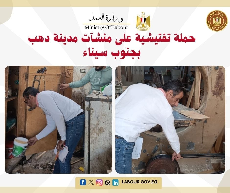 كما نفذ مكتب السلامة والصحة المهنية بنويبع حملة تفتيشية على منشآت بمدينة دهب، بتكليف من أكرم محمد سيد مدير مديرية العمل بجنوب سيناء.