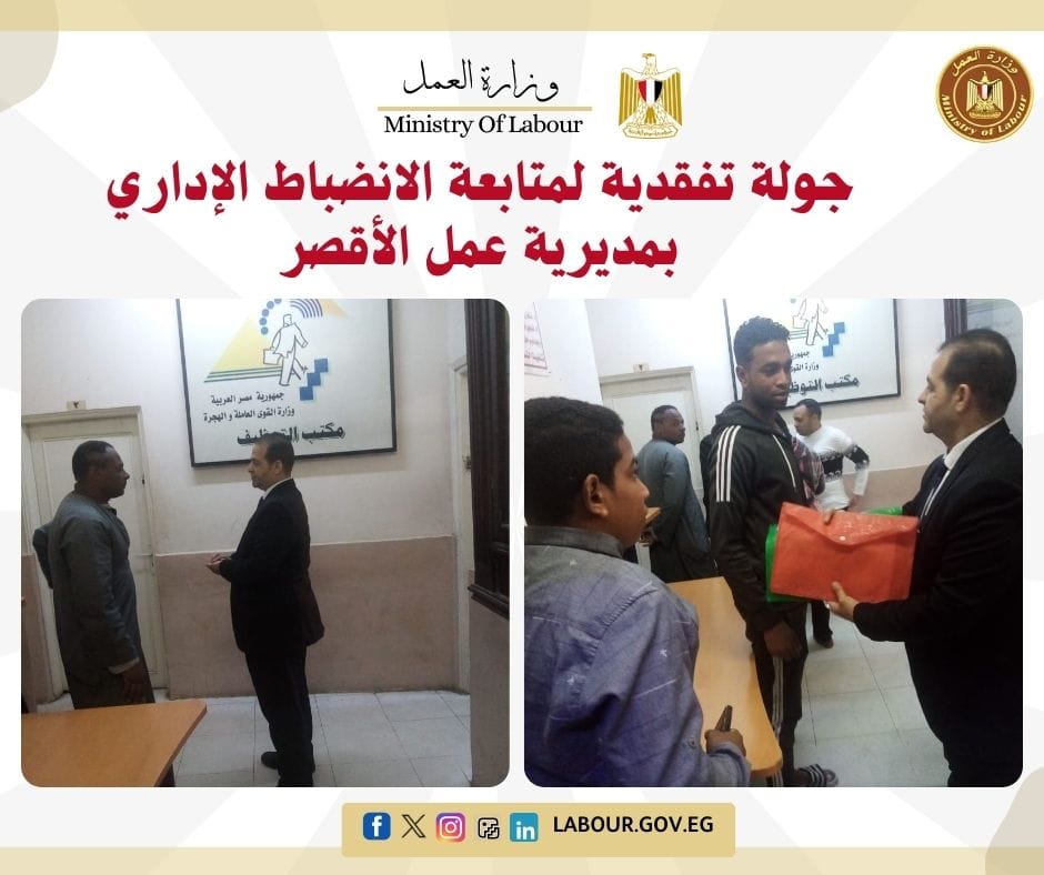 جولة تفقدية لمتابعة الانضباط الإداري بمديرية عمل الأقصر