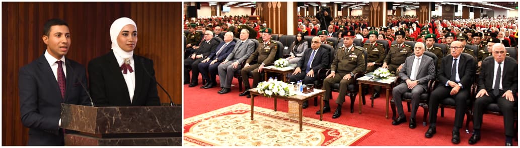 كما ألقى الفريق أشرف سالم زاهر مدير الأكاديمية العسكرية المصرية كلمة قدم خلالها التهنئة للخريجين متمنياً لهم التوفيق فى حياتهم العملية , مشيراً إلى حرص الأكاديمية على توفير كافة السبل لتخريج أجيال من شباب مصر الواعد مسلح بالعلم والإنضباط والوطنية قادر على العطاء فى مختلف قطاعات الدولة، واختتمت المراسم بتبادل الدروع وتكريم أوائل الخريجين.