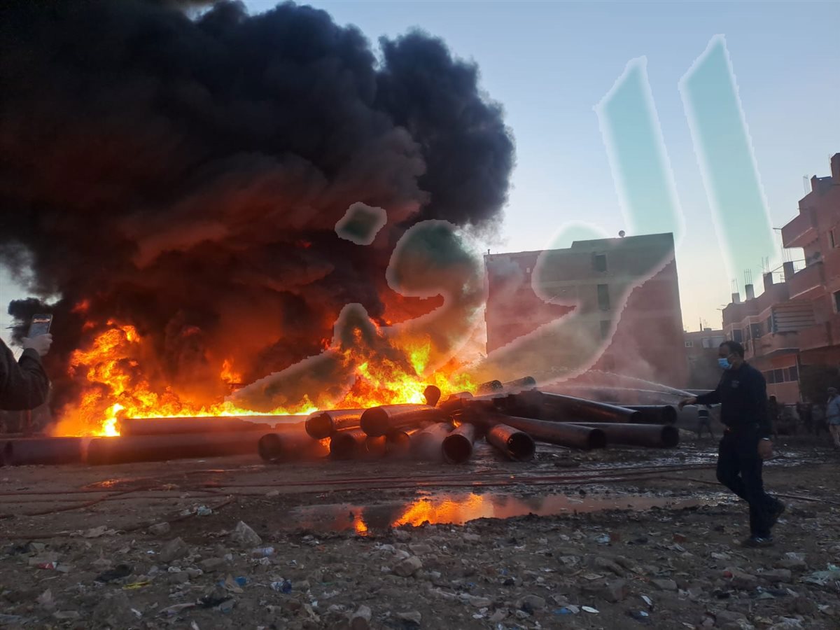 حريق يلتهم مخزن المواسير البلاستيك بقرية سنتريس بالمنوفية والحماية المدنية تحاول السيطرة |صور