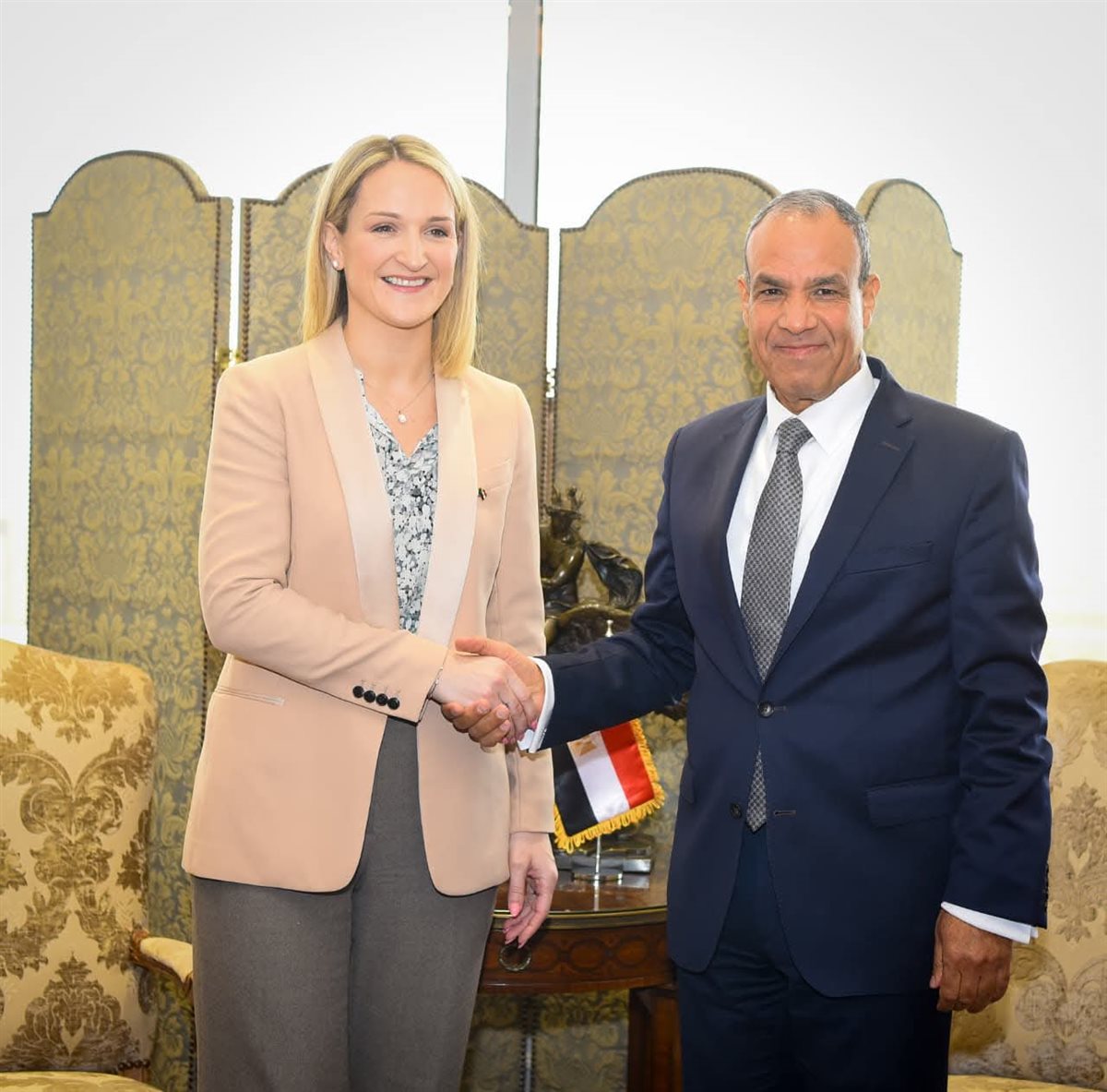 استقبل د. بدر عبد العاطى وزير الخارجية والهجرة وشئون المصريين بالخارج يوم الاثنين ١٢ يناير، "هيلين ماكينتي" وزيرة الهجرة والتجارة والدفاع الأيرلندية، حيث عقدت مشاورات سياسية لبحث سبل الارتقاء بالعلاقات الثنائية بين مصر وأيرلندا والوقوف على آخر التطورات الإقليمية والدولية ذات الاهتمام المشترك.