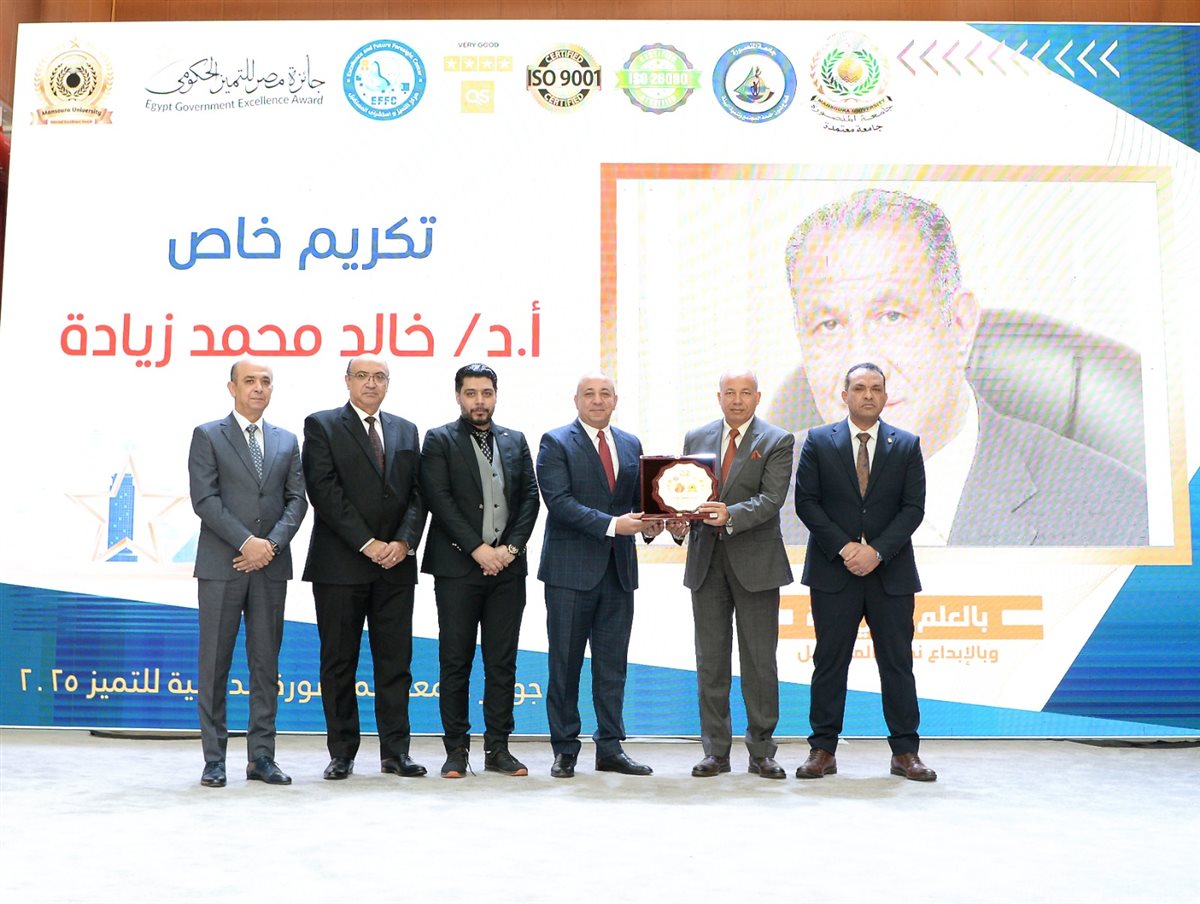 وفي كلمته، أكد الدكتور شريف خاطر أن هذا اليوم «يمثل طفرة غير مسبوقة لجامعة عريقة يزيد تاريخها على خمسين عامًا»، مشيرًا إلى أن ملف الجودة والتميز من أقوى الملفات التي حققت فيها الجامعة نجاحًا ملموسًا، خاصة منذ انطلاق النسخة الأولى للتميز الحكومي، موجّهًا الشكر لجهود فرق العمل المتميزة ودورهم الفاعل في دعم منظومة التميز، وكذلك إلى إدارة جائزة مصر للتميز الحكومي، وإلى جميع فرق التقييم، وإلى الشركة المانحة لشهادات الأيزو.
