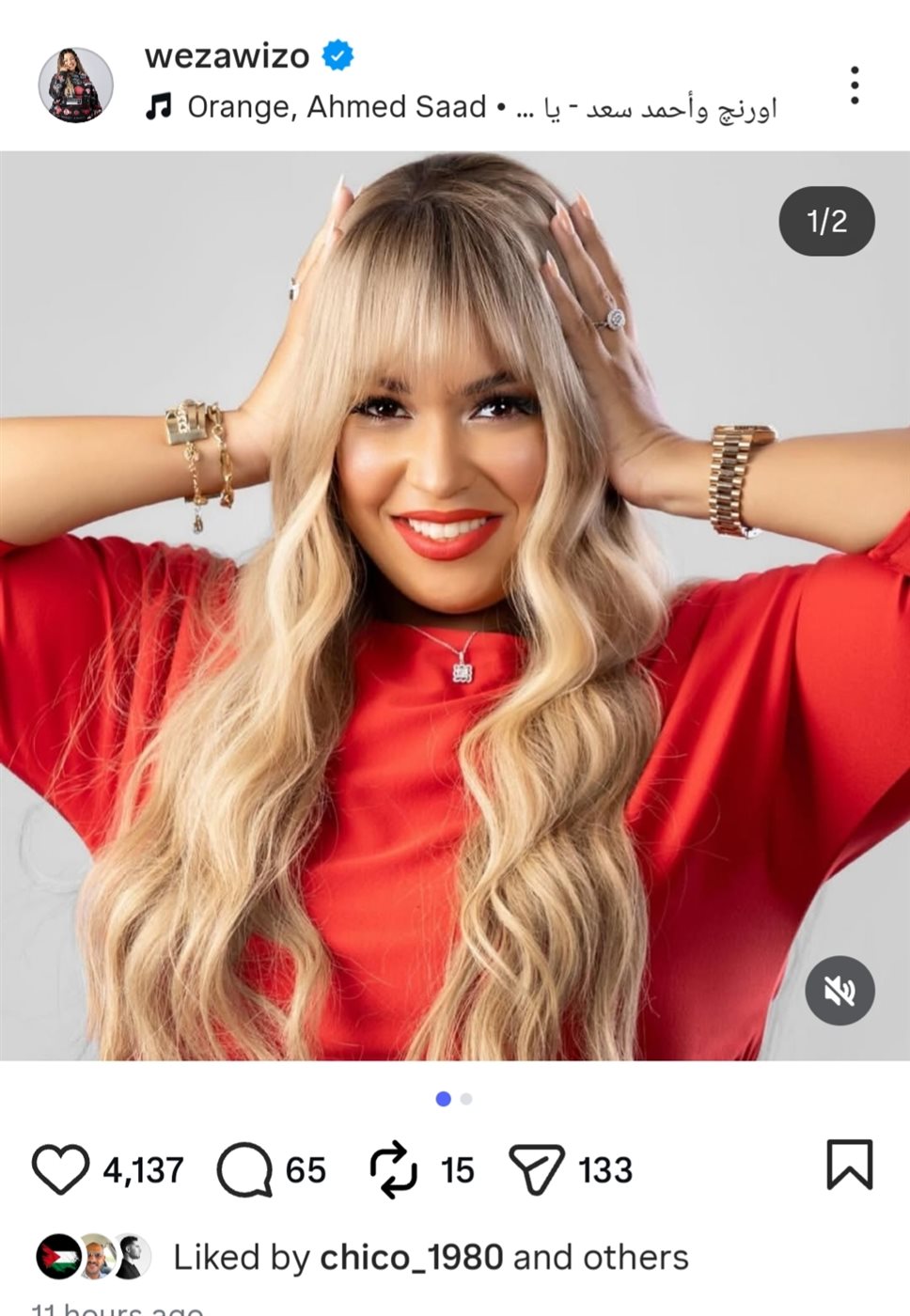 شاركت الفنانة ويزو جمهورها صورة جديدة عبر حسابها الشخصي على موقع التواصل الاجتماعي "إنستجرام".